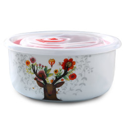 松发居图浮雕便当盒陶瓷带盖保鲜碗加深加大微波炉饭盒耐热密封