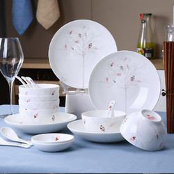 松发陶瓷碗碟套装家用6人小清新骨瓷餐具套装中式碗盘套装组合