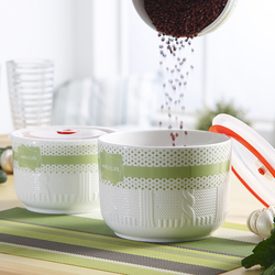 居图带盖骨瓷保鲜泡面碗三件套陶瓷饭盒微波炉密封便当保鲜盒套装
