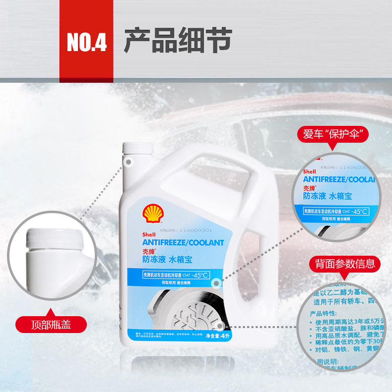 Shell壳牌正品汽车防冻液水箱宝 防沸 防冻 防水垢 -45C 4L