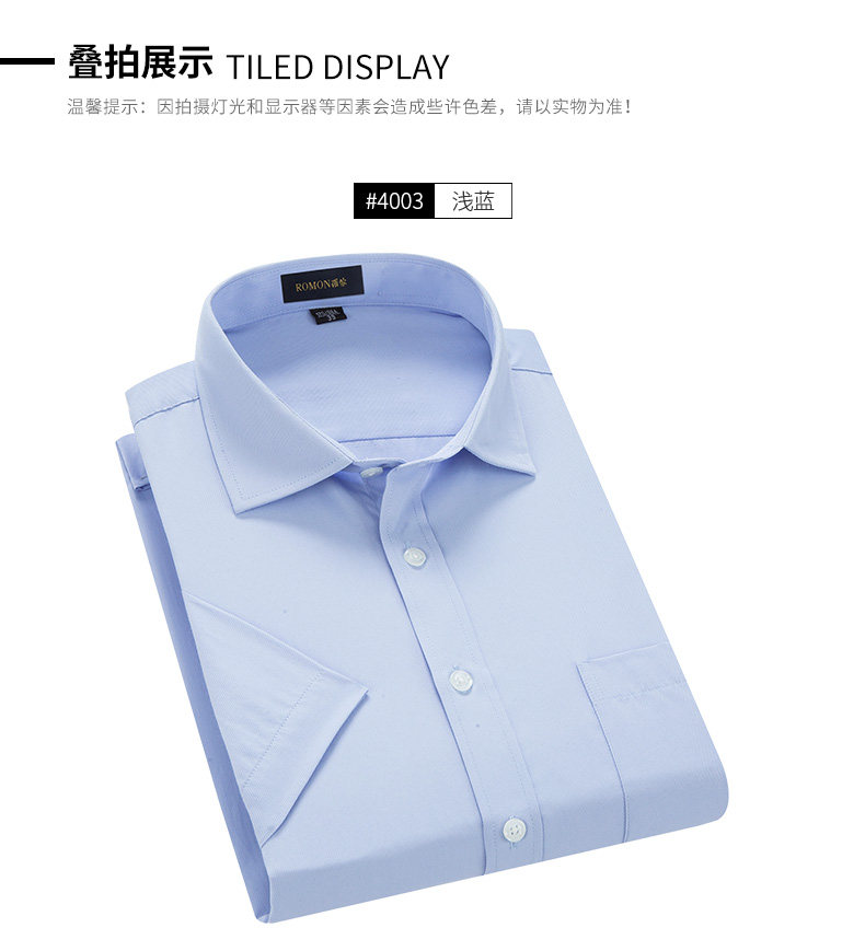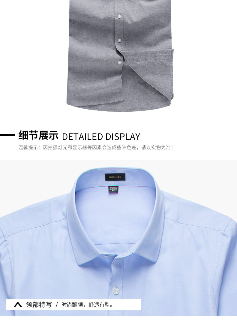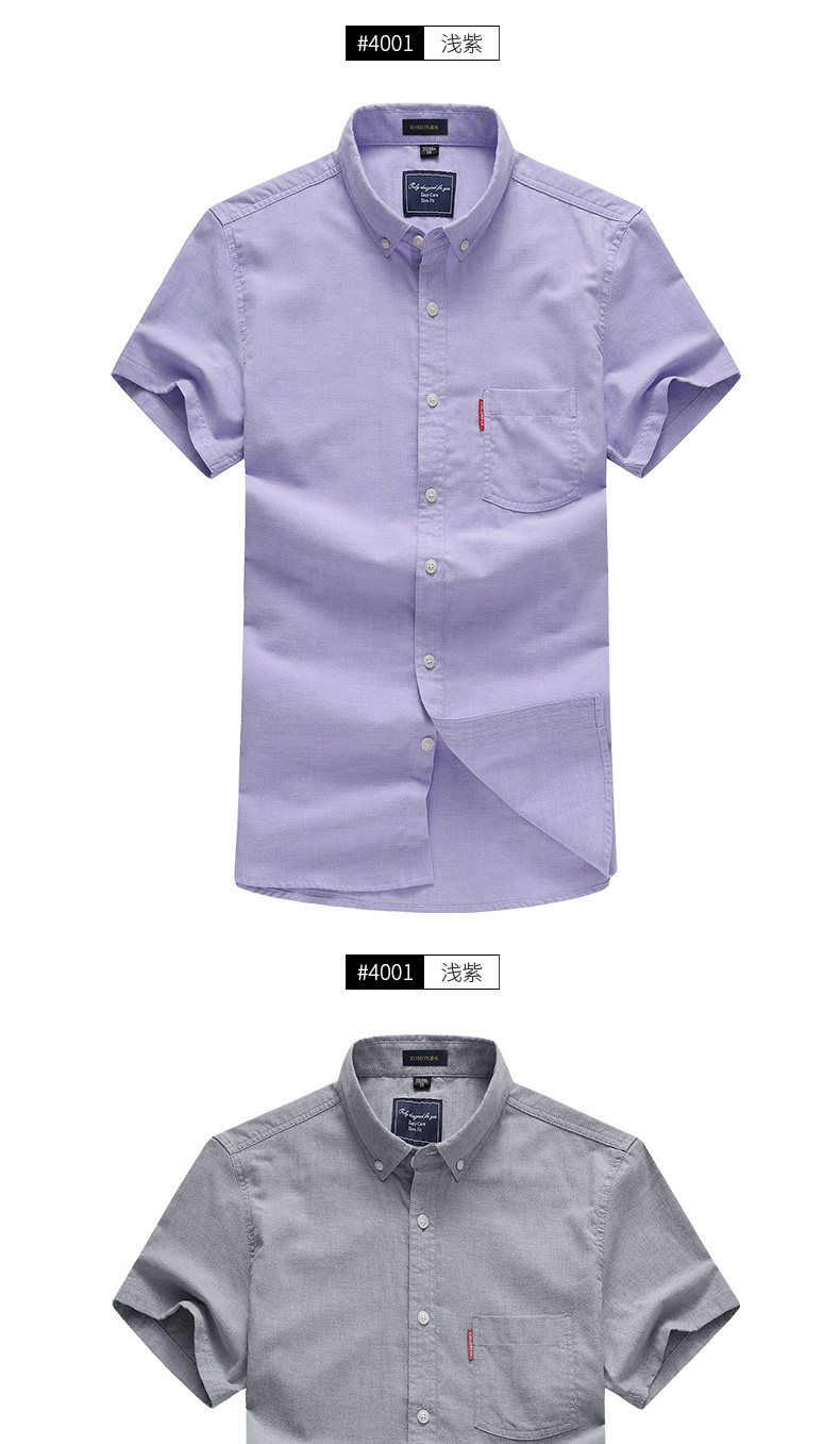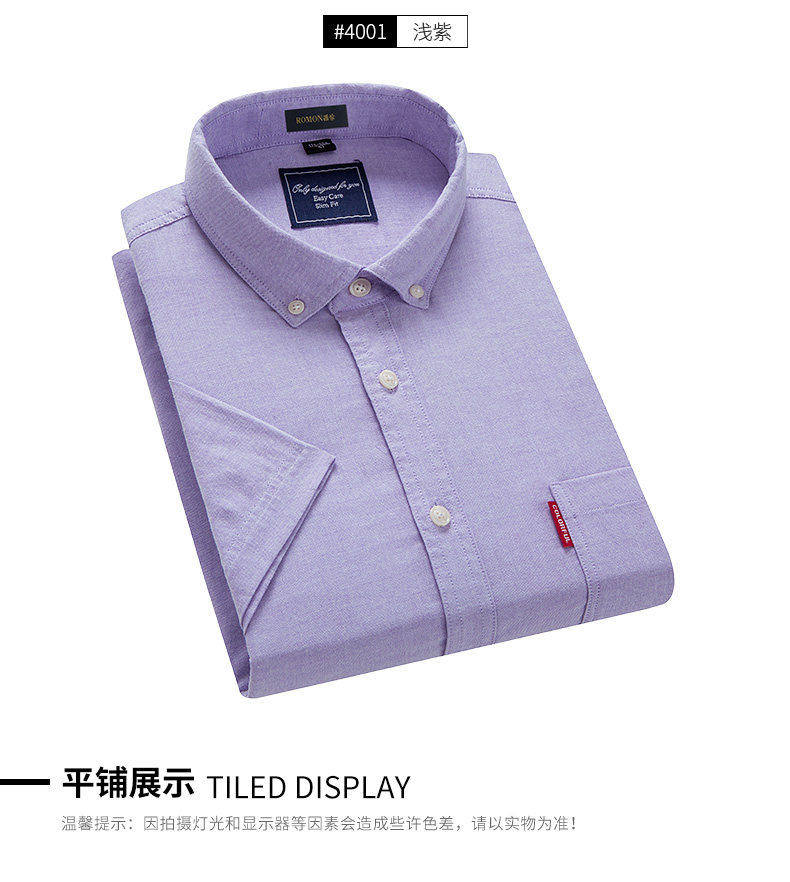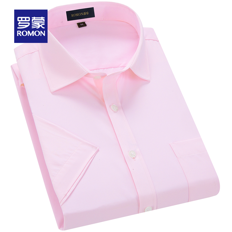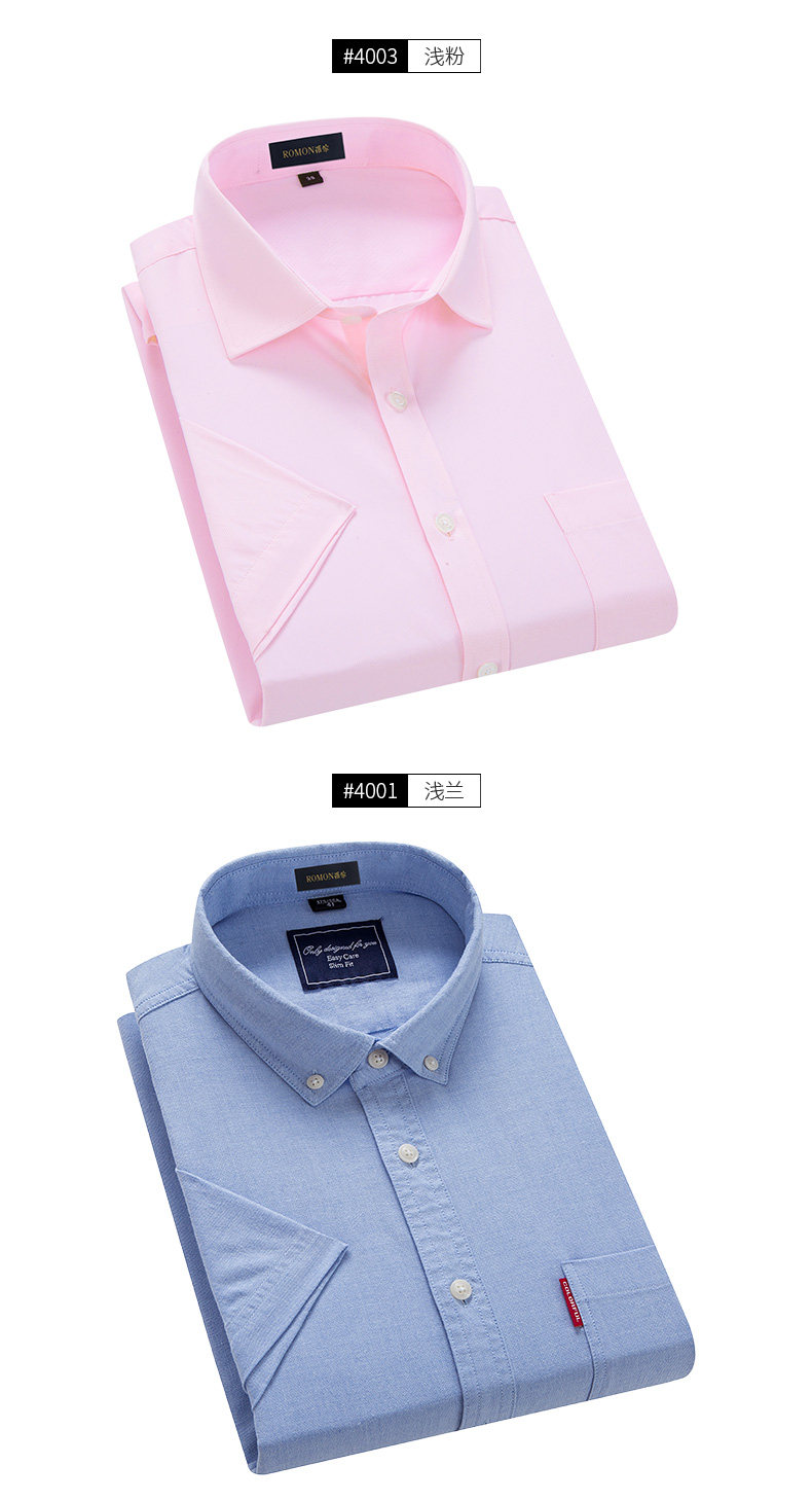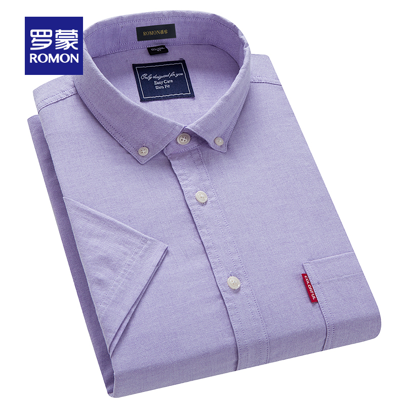 Romon/罗蒙短袖休闲衬衫2018夏季中青年牛津纺翻领纯色时尚寸衫男