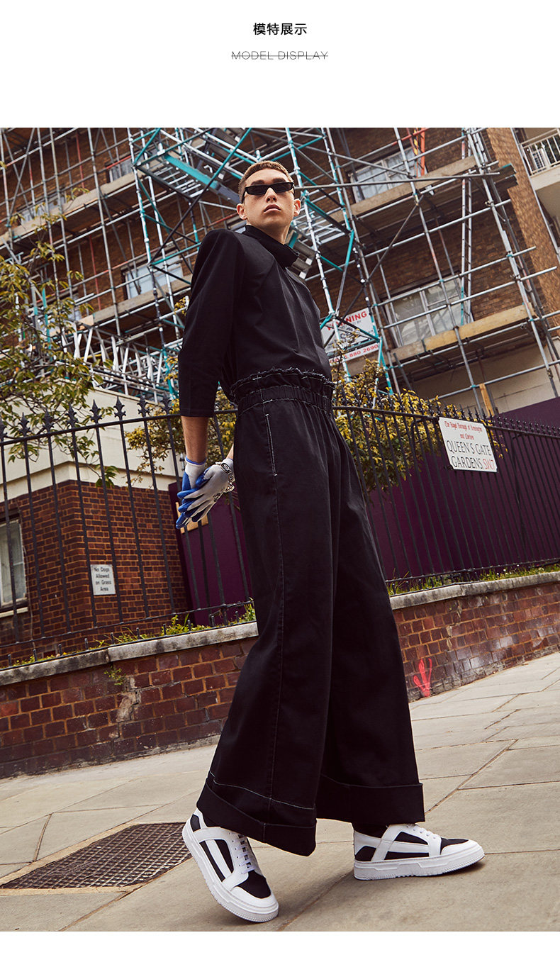 GXG男装 2018春季新品黑色运动裤子束脚针织休闲长裤男#181802030