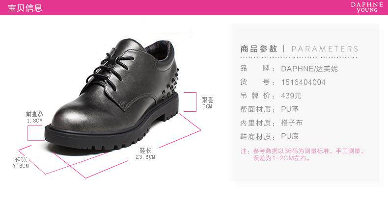 Daphne/达芙妮春秋系带厚底粗跟圆头英伦女鞋铆钉学院绑带单鞋