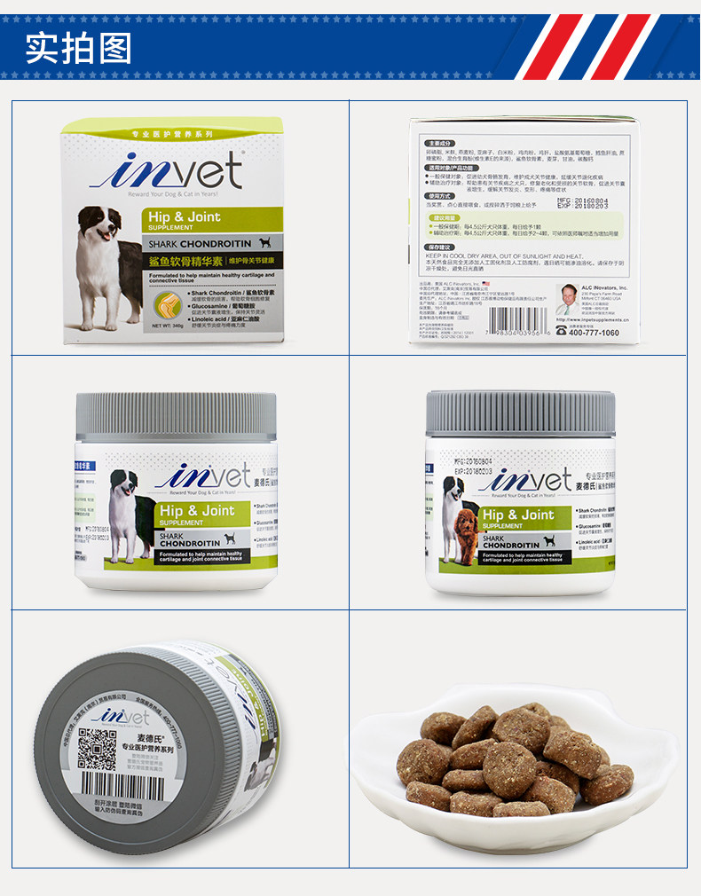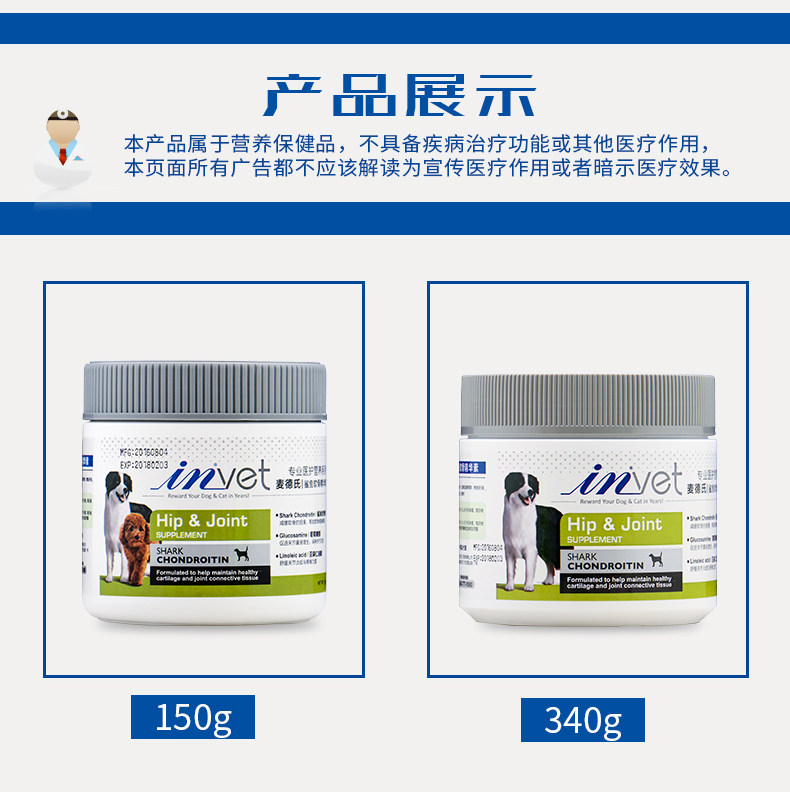麦德氏 IN-VET 犬用鲨鱼软骨精华素340g 维护狗狗关节健康