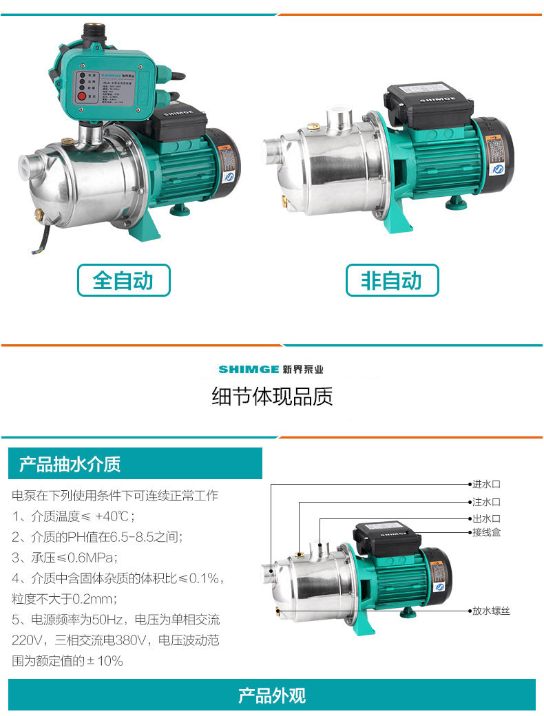 新界抽水泵220/380V灌溉农用家用潜水泵井水提水无污染离心泵水塔