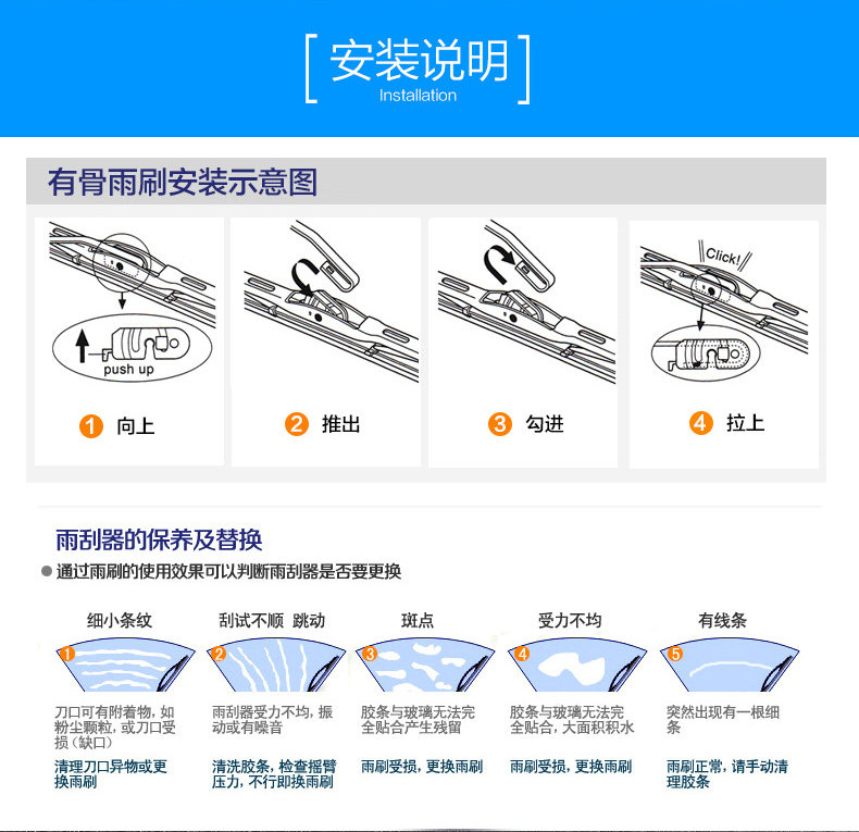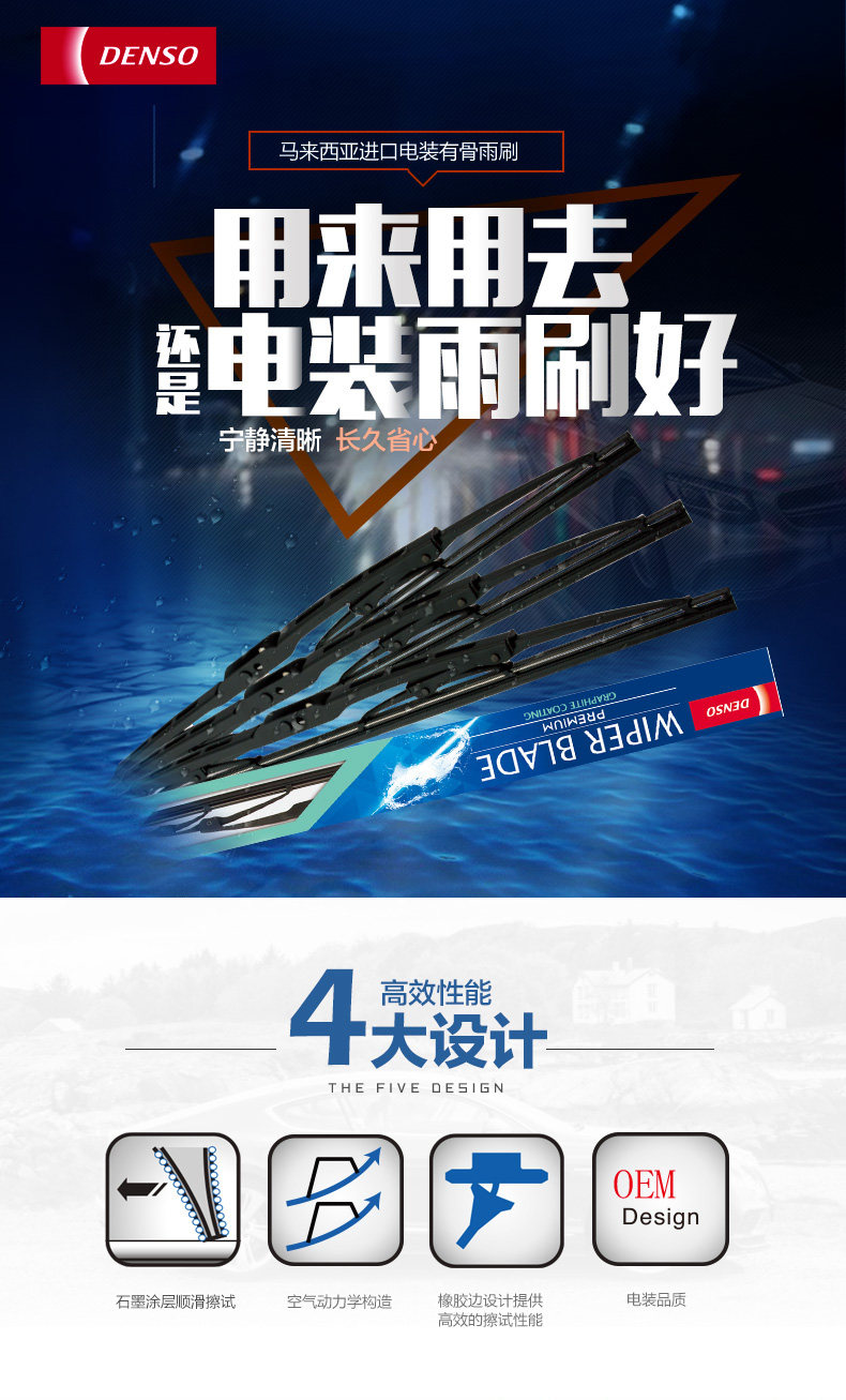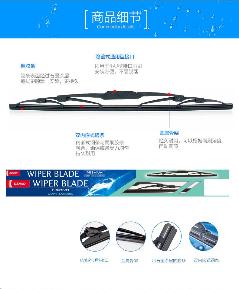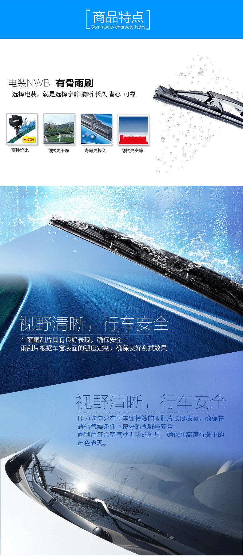 DENSO电装进口有骨雨刷 雨刮器 NWB雨刷片小U型口通用雨刷 单支