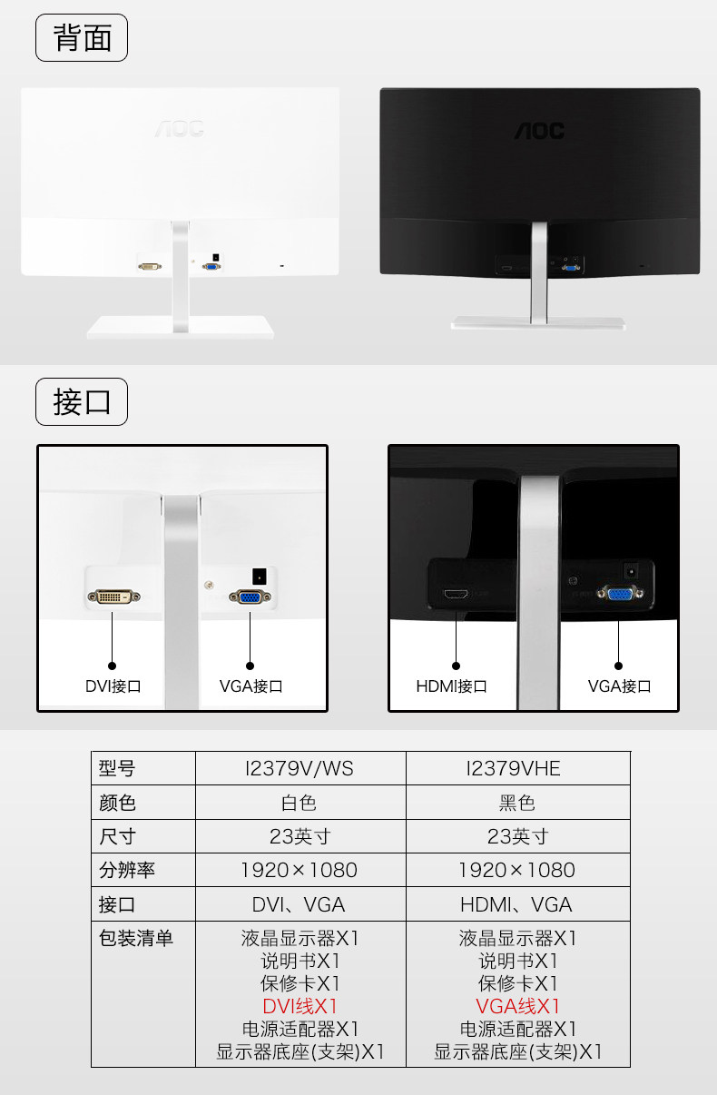 京天华盛I2379V 23英寸IPS屏幕台式液晶显示屏 AOC电脑显示器