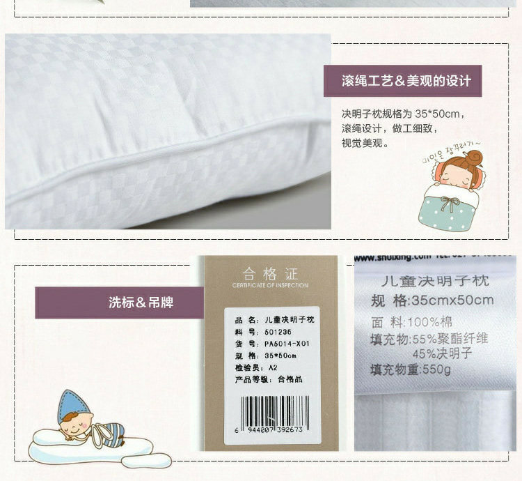 以下是水星家纺正品全棉枕头一只装枕芯护颈枕头儿童决明子枕赠枕套的详细说明,厂家介绍,求购联系信息,最终解释权归上海水星家用纺织品股份有限公司所有