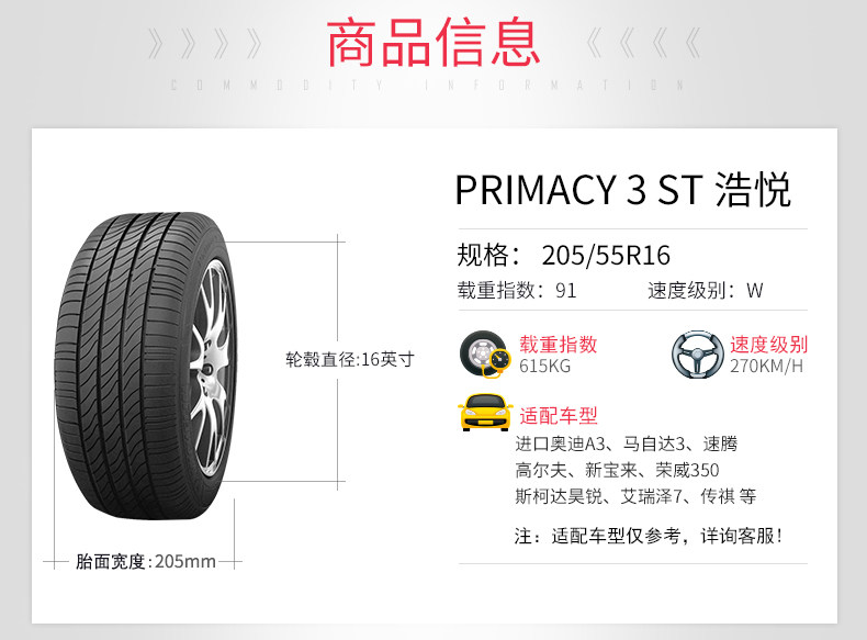 米其林汽车轮胎PRIMACY 3ST浩悦 205/55R16 91W 速腾适配可安装