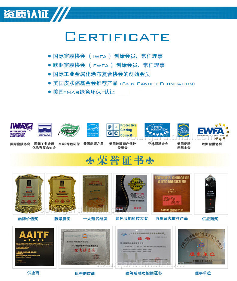 圣戈班量子膜 防爆隔热膜 侧后挡太阳膜 金爵系列全国包安装