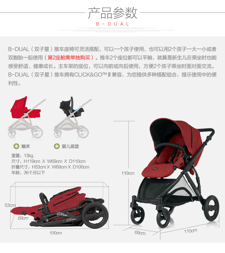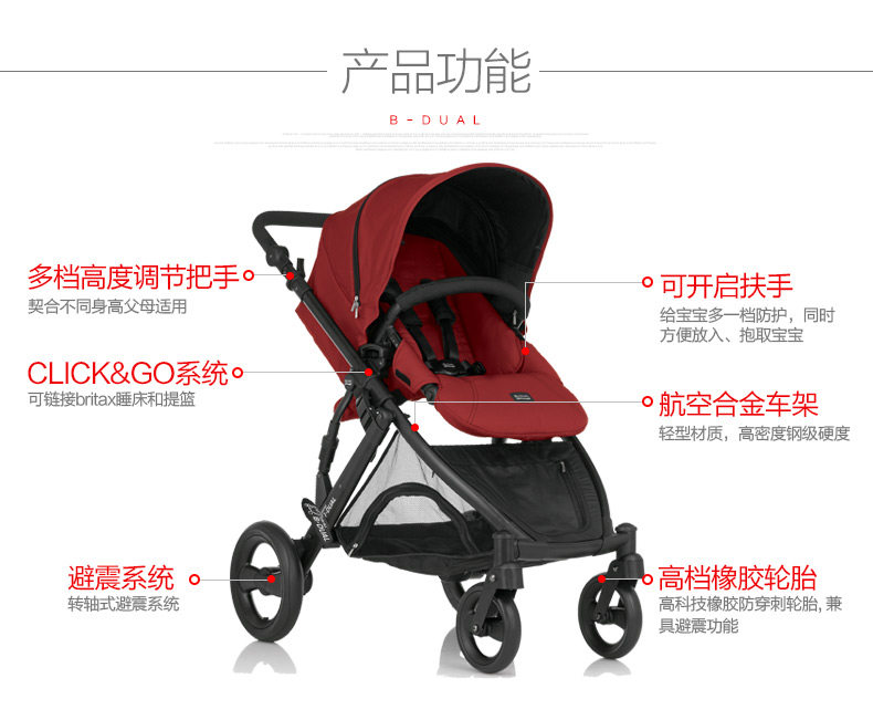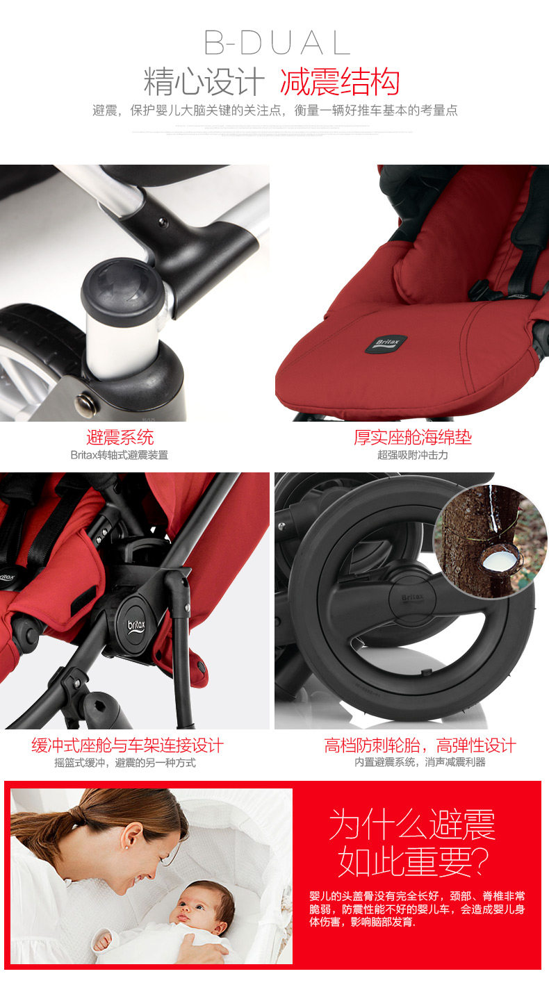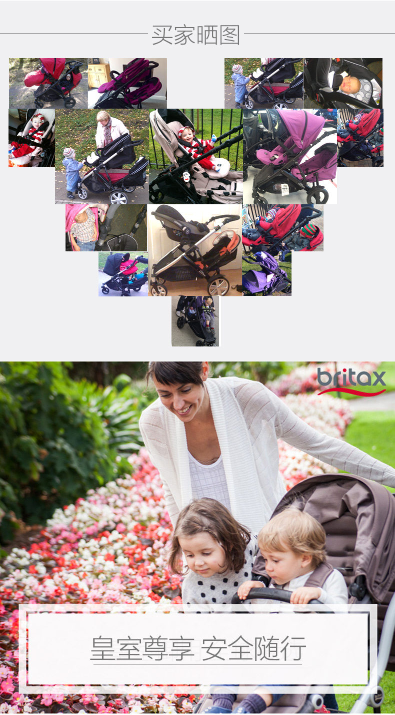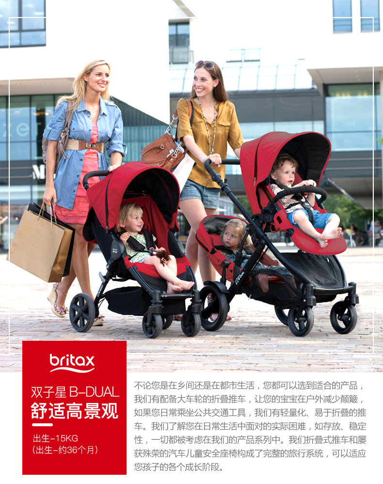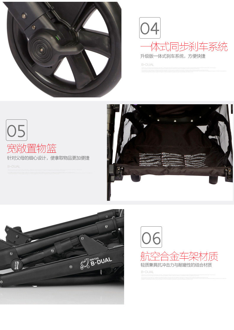 britax宝得适高景观婴儿手推车 双向推车 四轮推车婴儿车 双子星