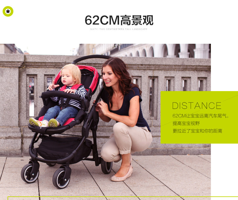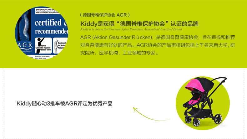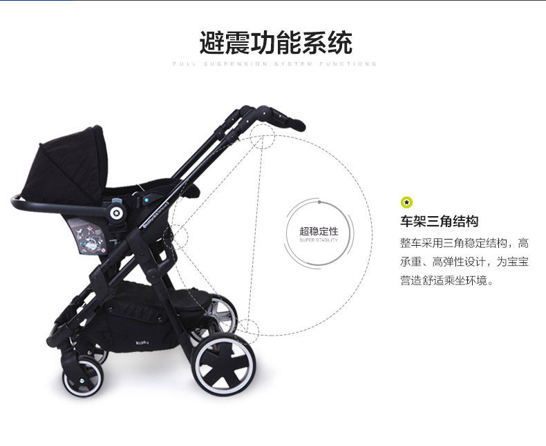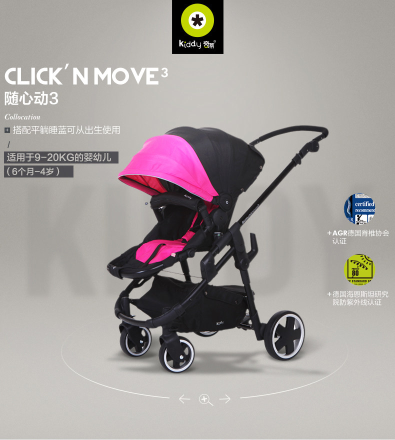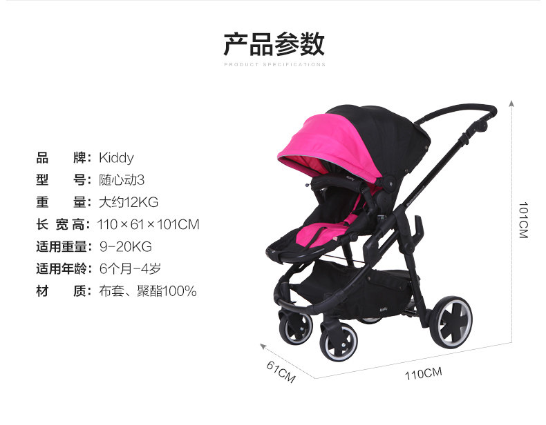 瑕疵 德国kiddy奇蒂避震轻便婴儿推车高景观可躺折叠伞车随心动3