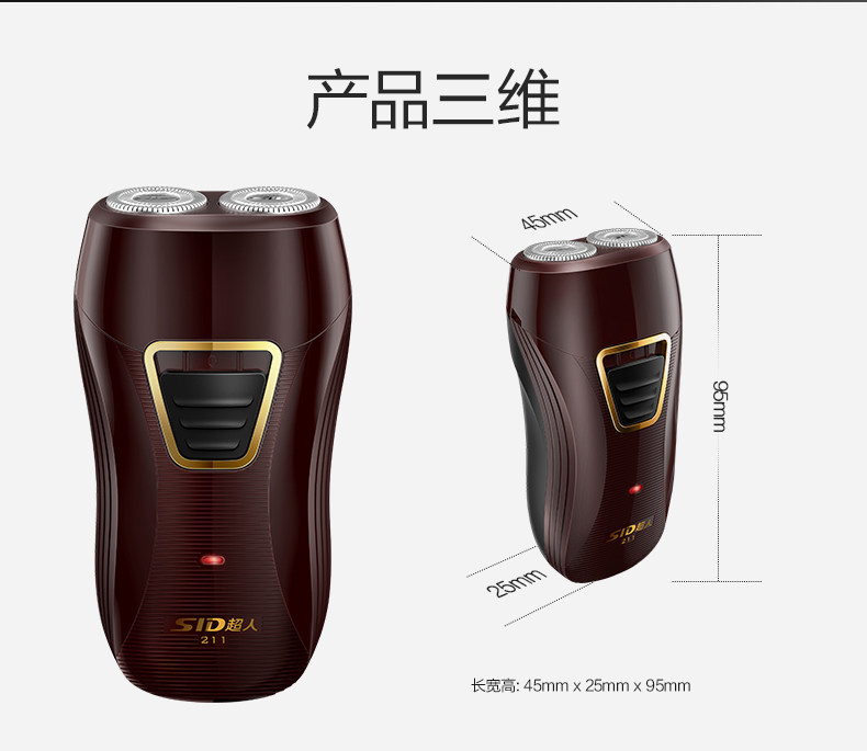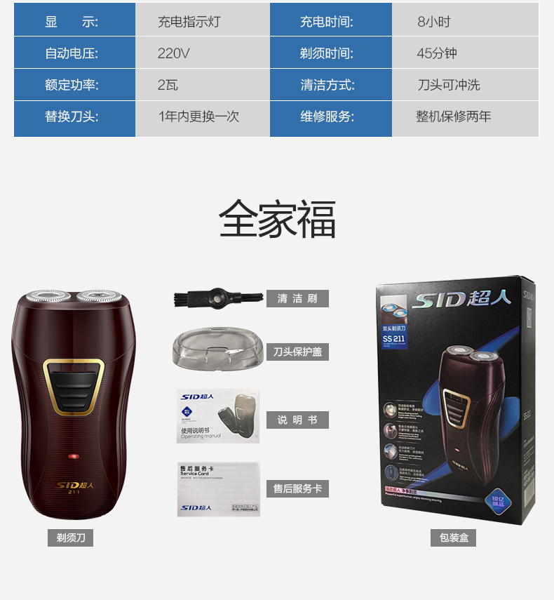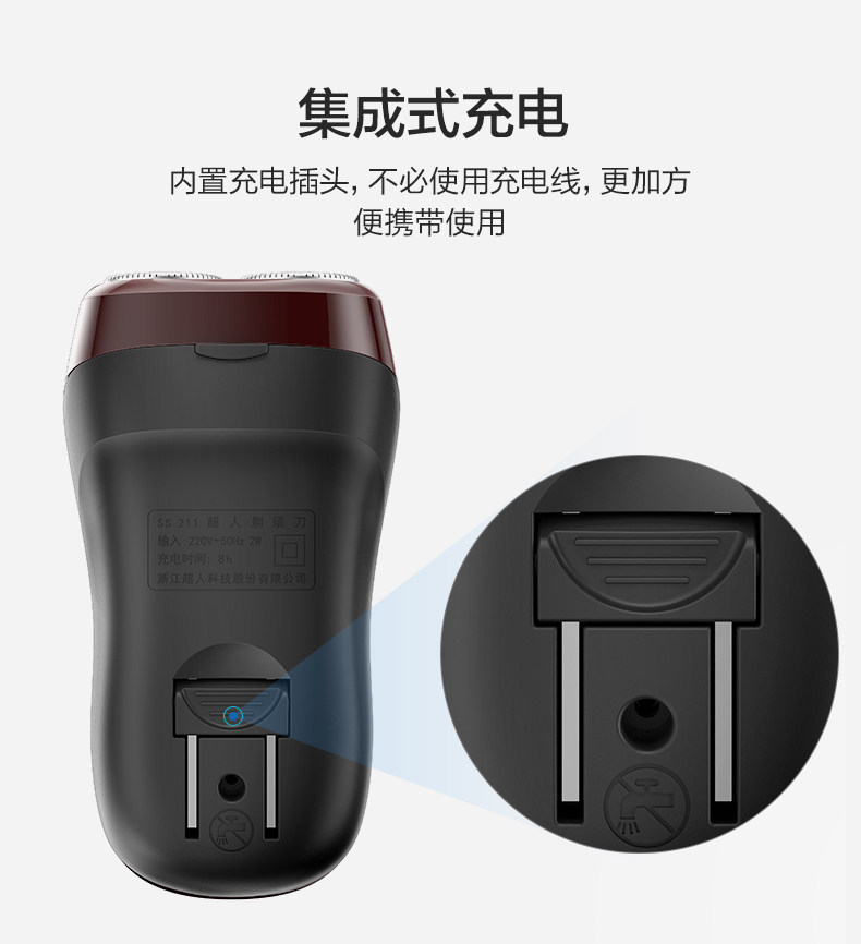 以下是超人SS211双头电动剃须刀直插式充电式刮胡刀刀头水洗须刨的详细说明,厂家介绍,求购联系信息,最终解释权归超人集团有限公司所有