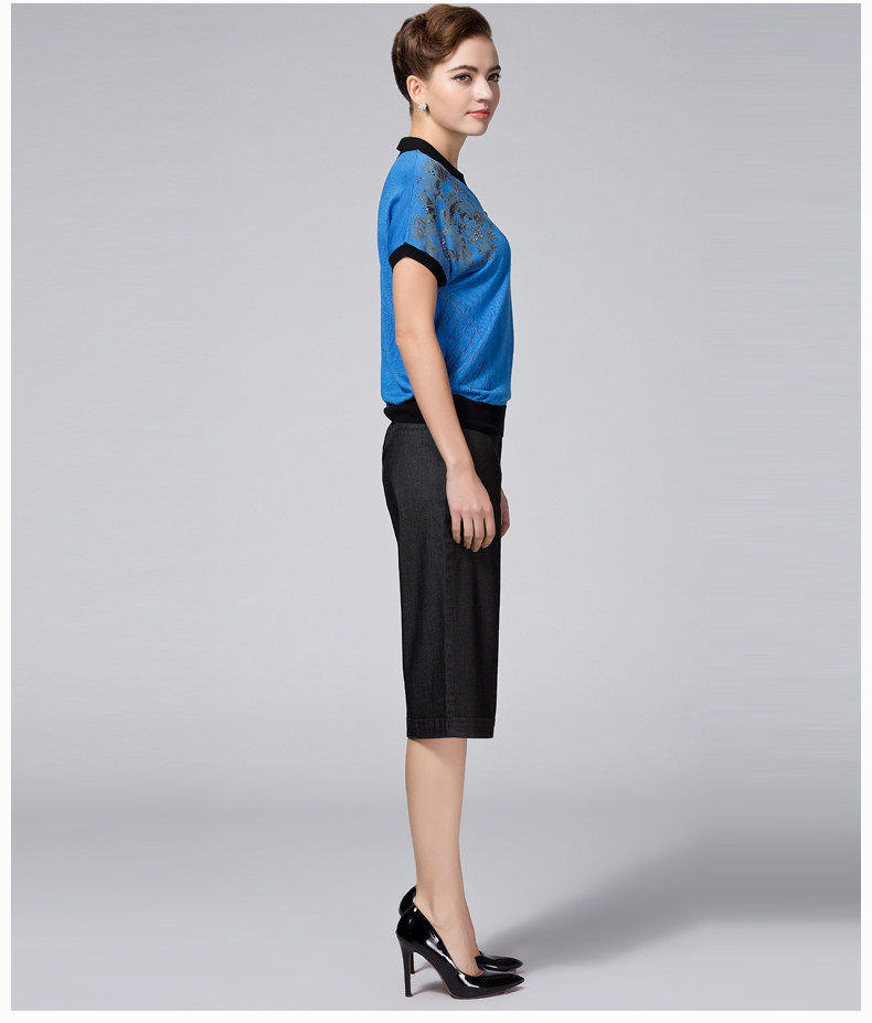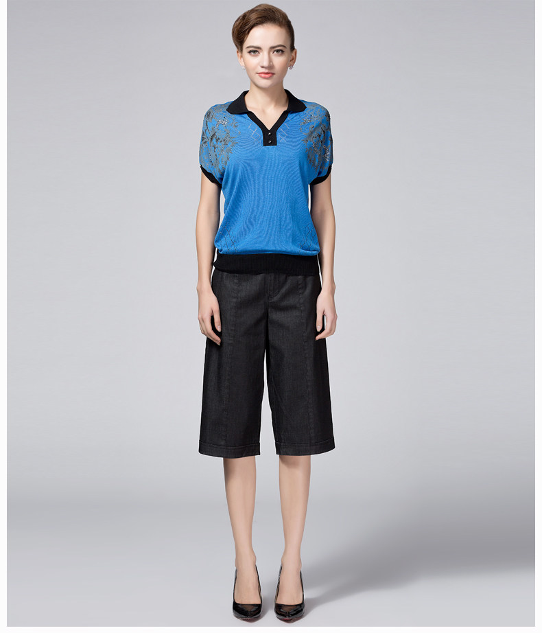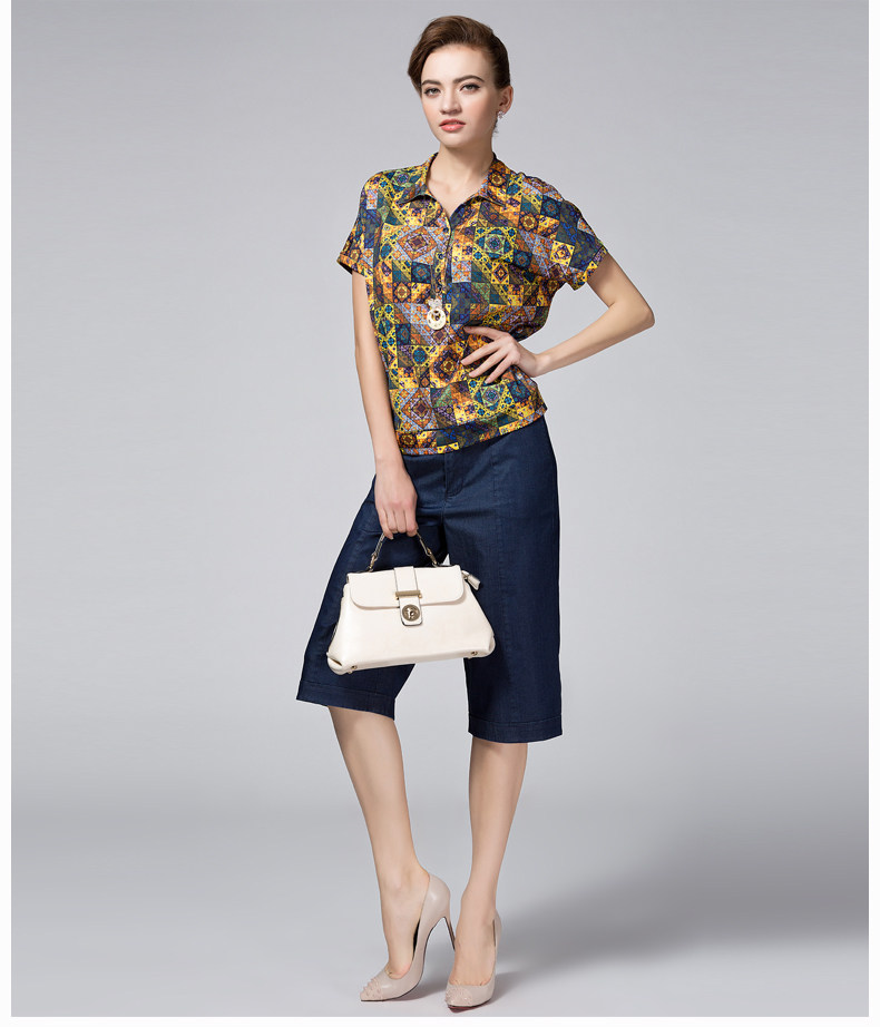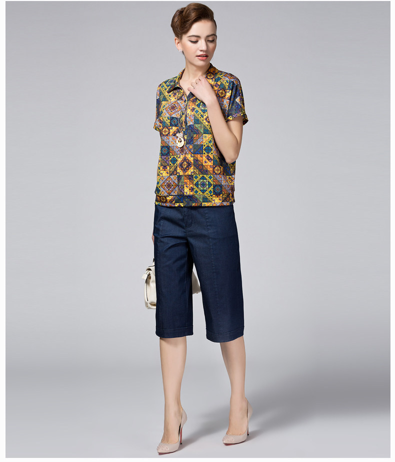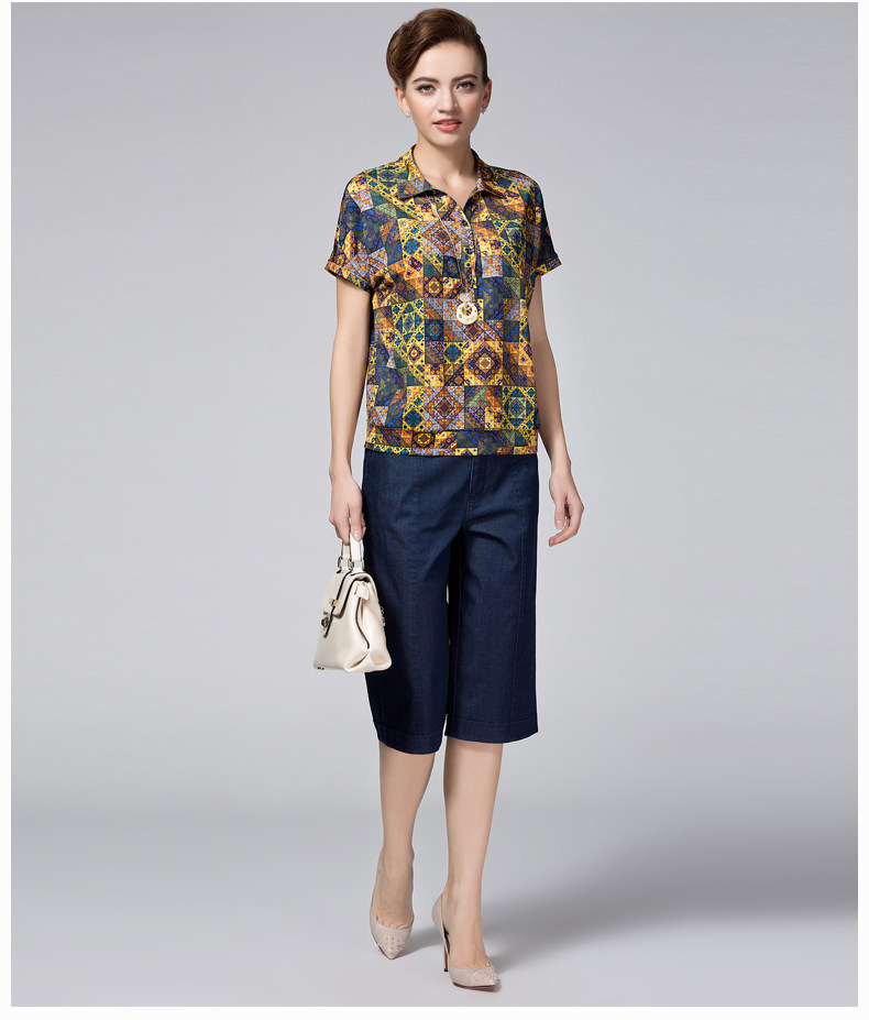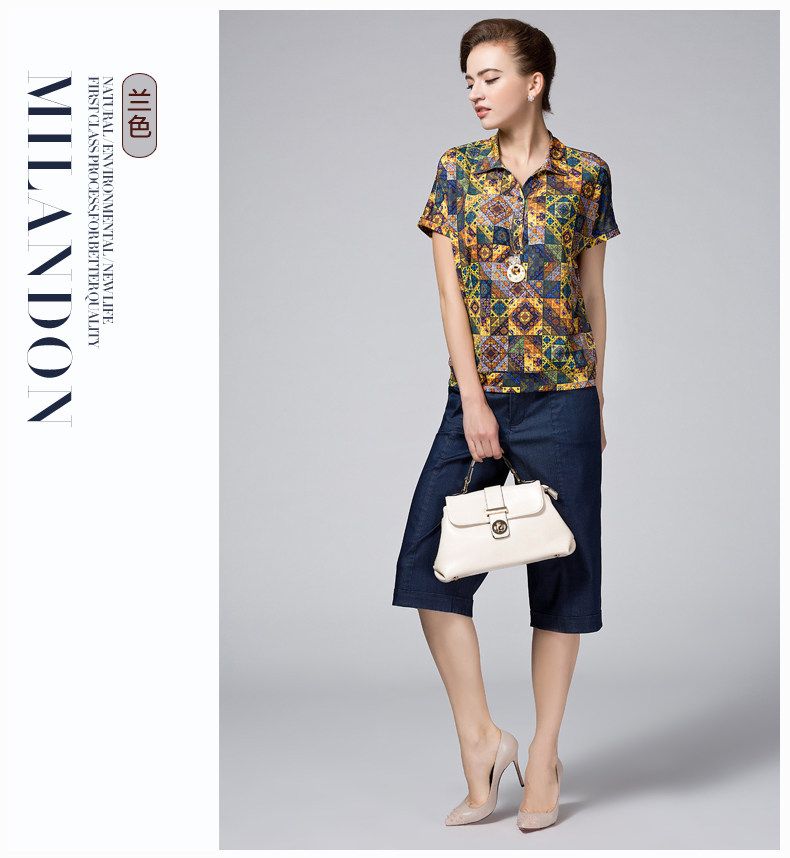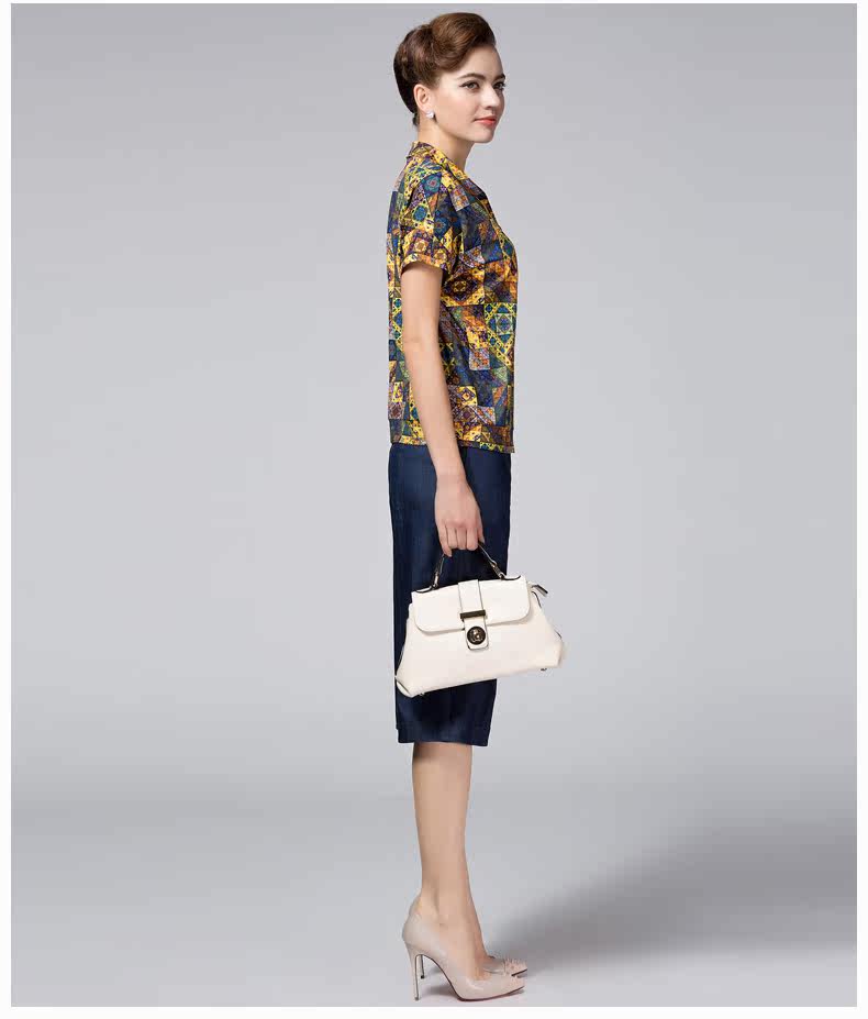 米兰登2017夏季妈妈装短袖t恤 中老年印花T恤女圆领薄WH2T0003