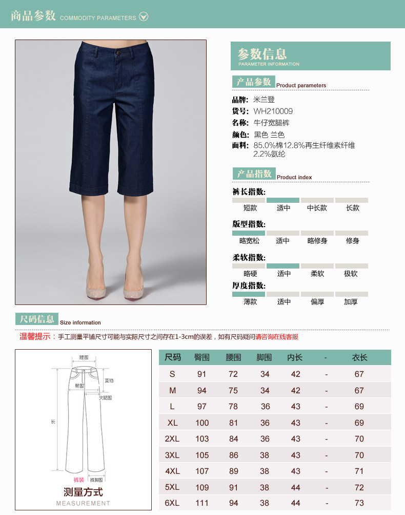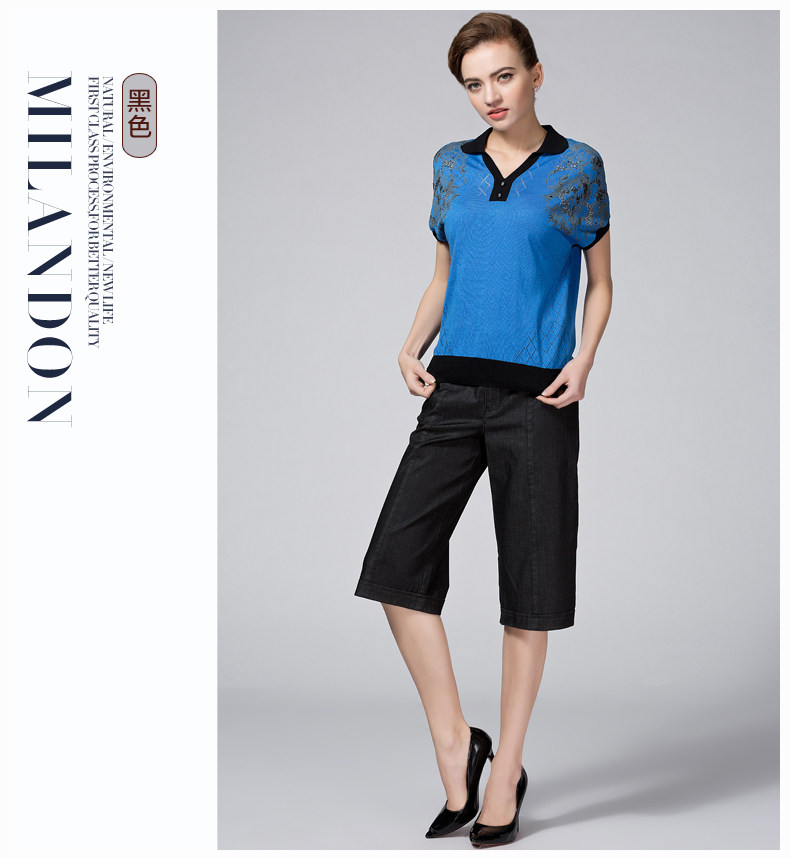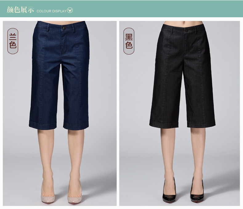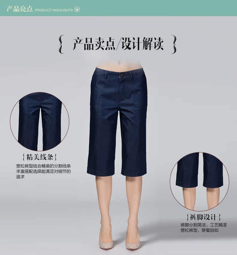 米兰登2017妈妈裤子夏 中老年牛仔宽腿裤女大码宽松薄WH210009