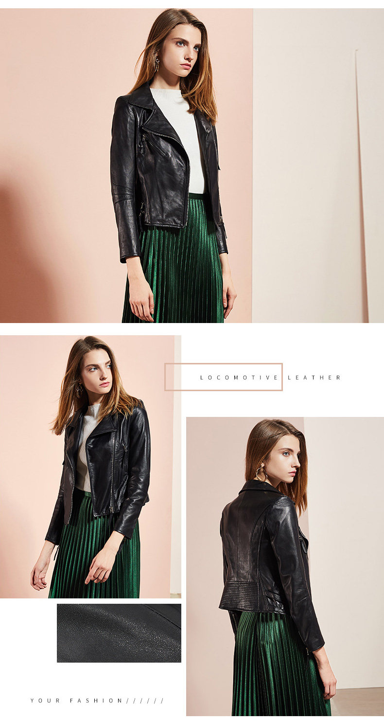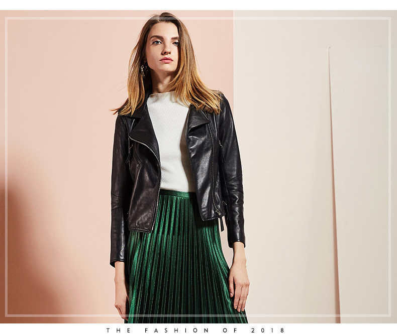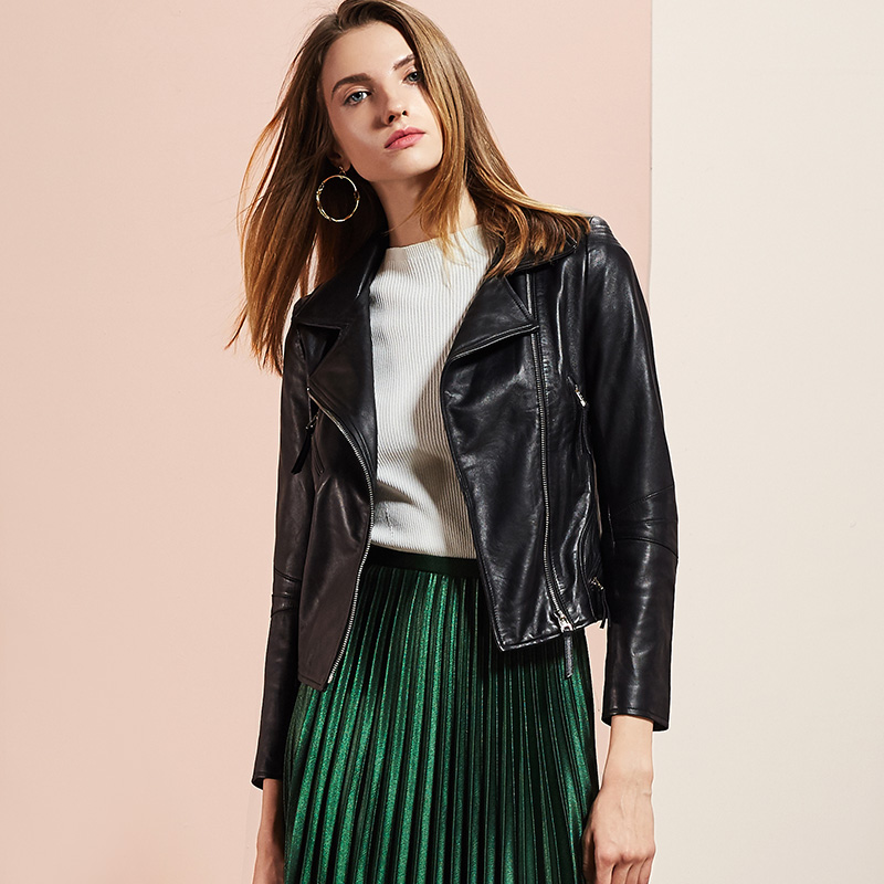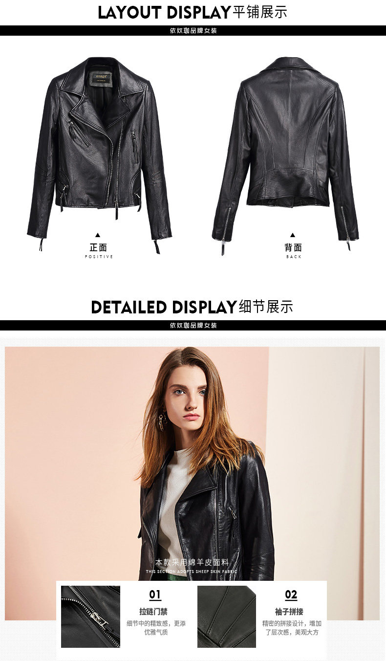 依奴珈真皮皮衣女短款2017新款春秋绵羊皮机车服女皮夹克外套