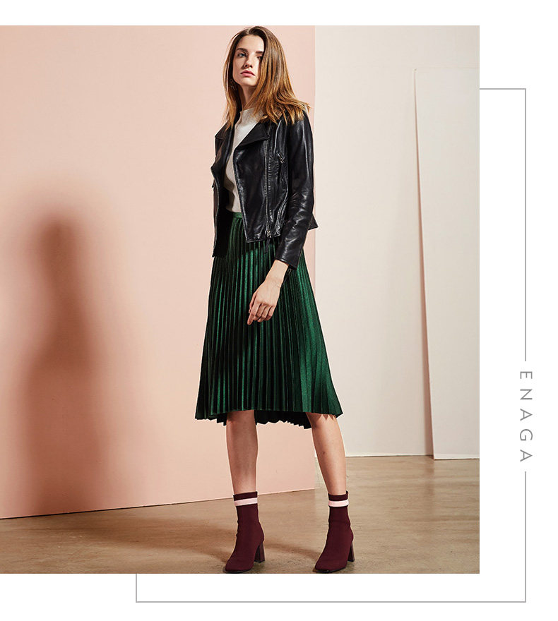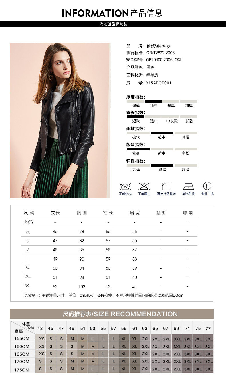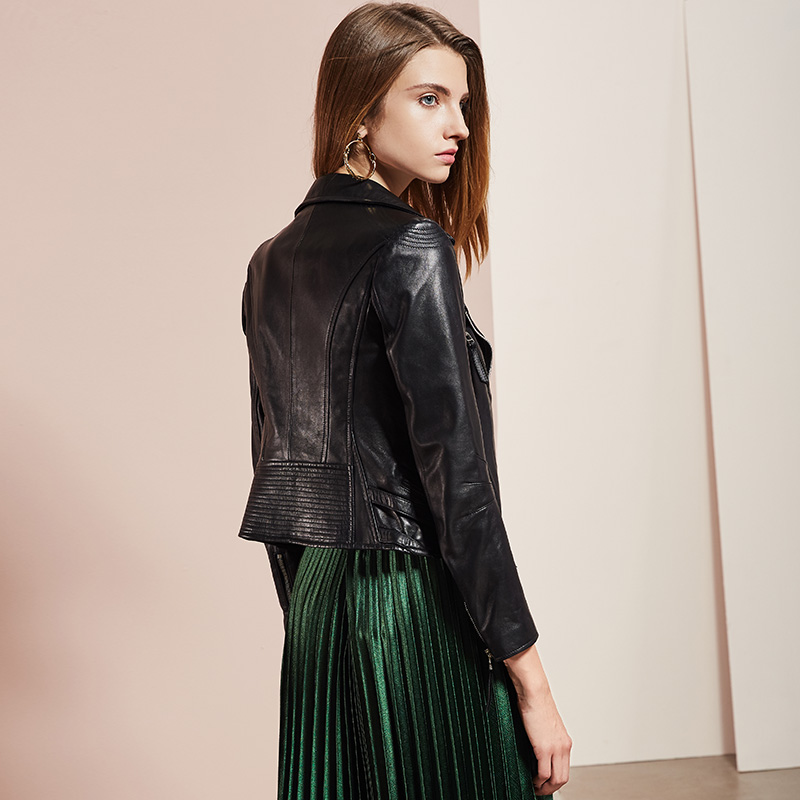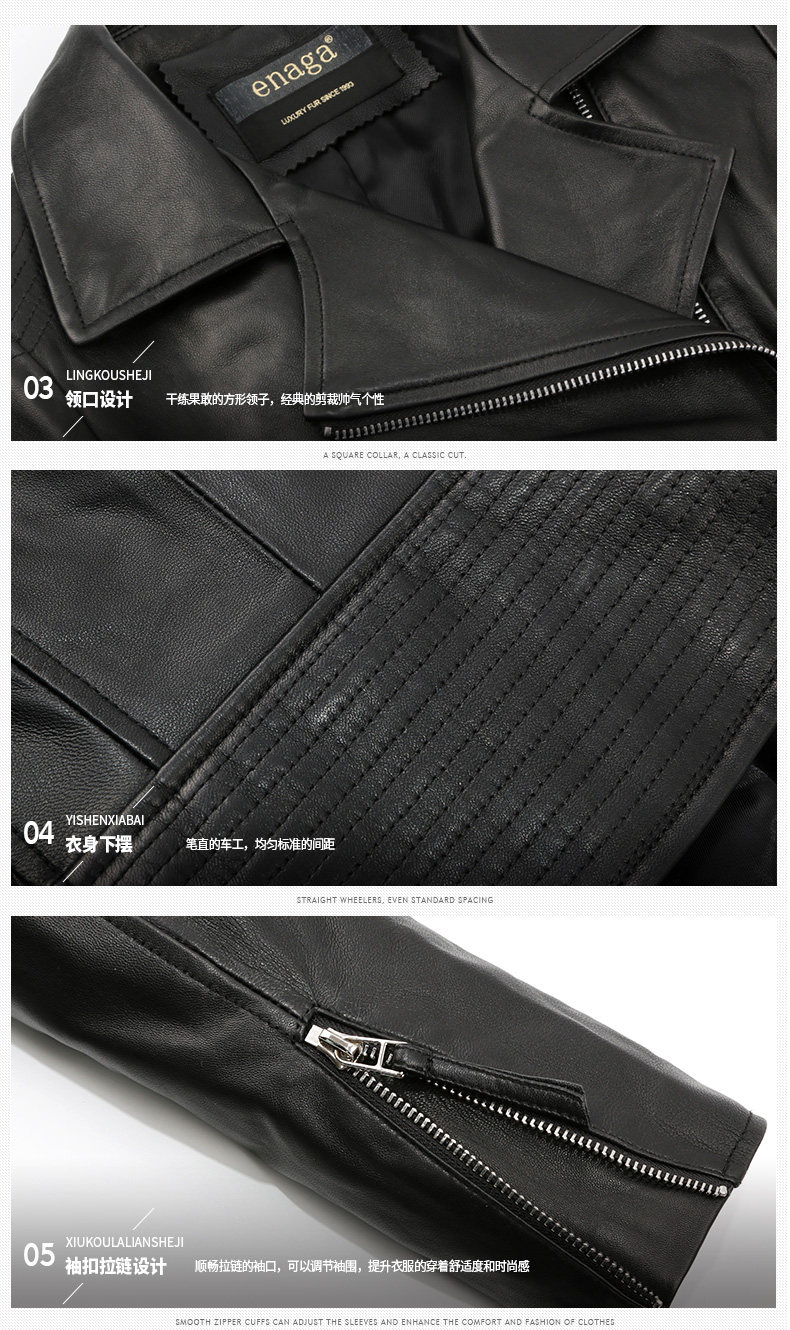 依奴珈真皮皮衣女短款2017新款春秋绵羊皮机车服女皮夹克外套
