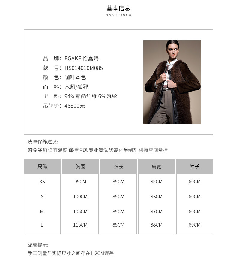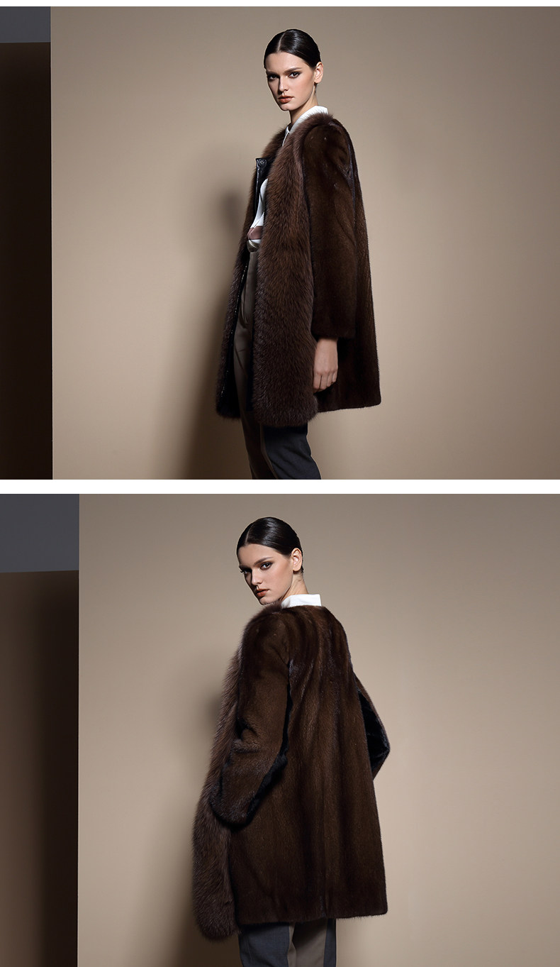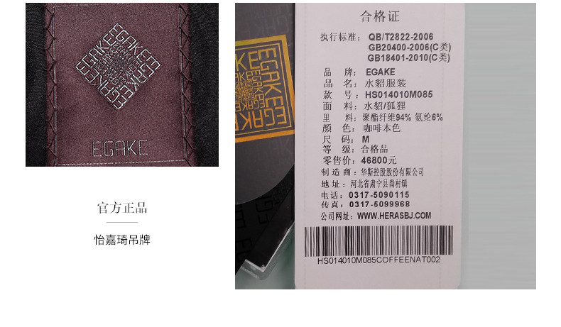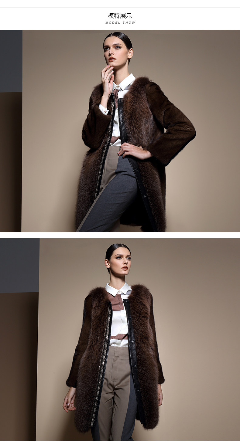 EGAKE/怡嘉琦 秋冬时尚女中长款水貂 狐狸 皮草大衣外套