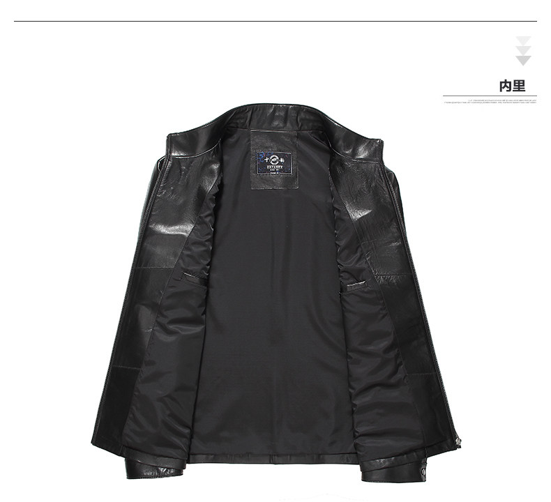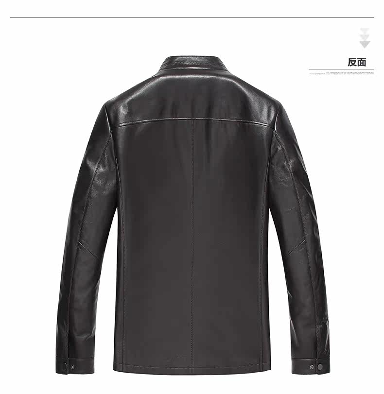 雪豹真皮西装男 绵羊皮修身男士外套 单皮皮衣 立领黑色6033