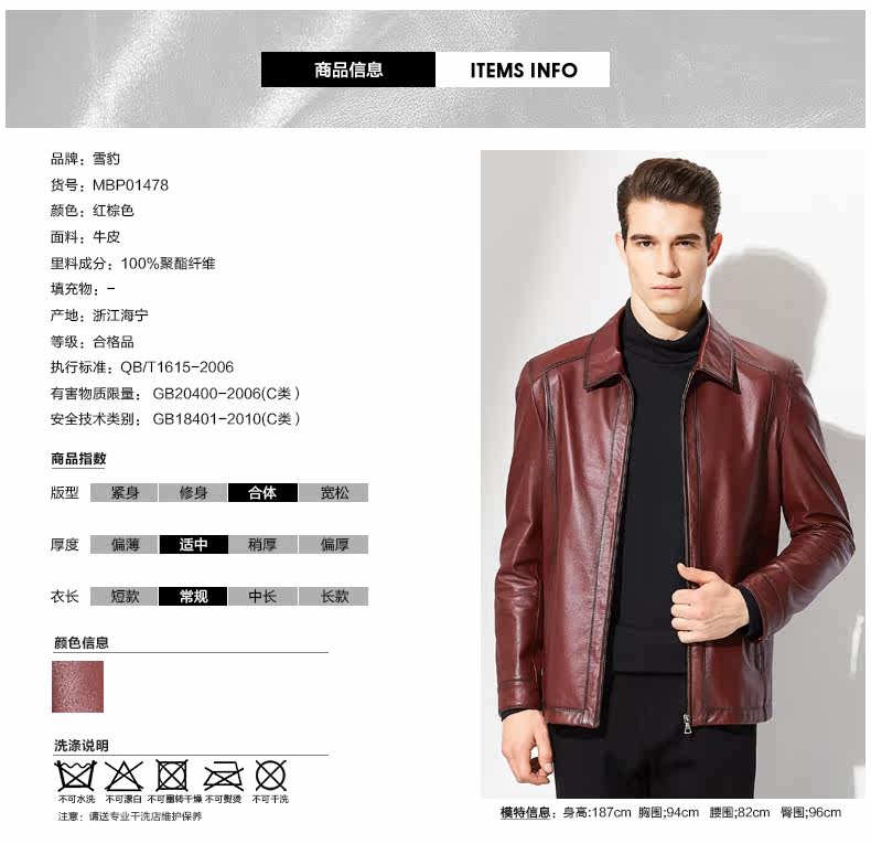 以下是雪豹真皮皮衣男海宁2018新款商务单皮薄款牛皮翻领夹克外套01478的详细说明,厂家介绍,求购联系信息,最终解释权归浙江雪豹服饰有限公司所有