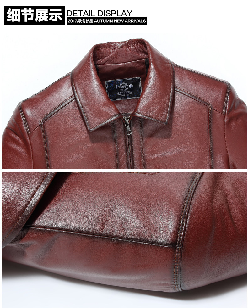 华创商务网 > 餐饮生鲜 > 家畜 > > 雪豹真皮皮衣男海宁2018新款商务单皮薄款牛皮翻领夹克外套01478