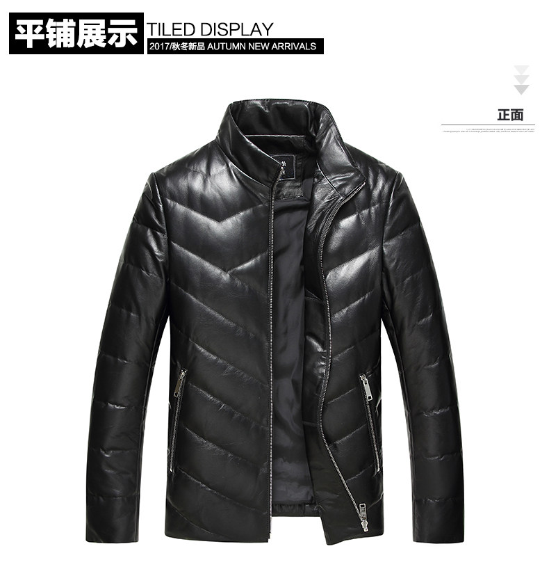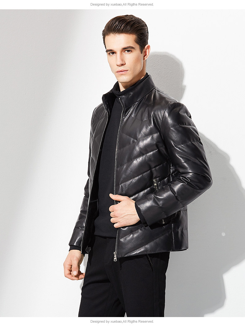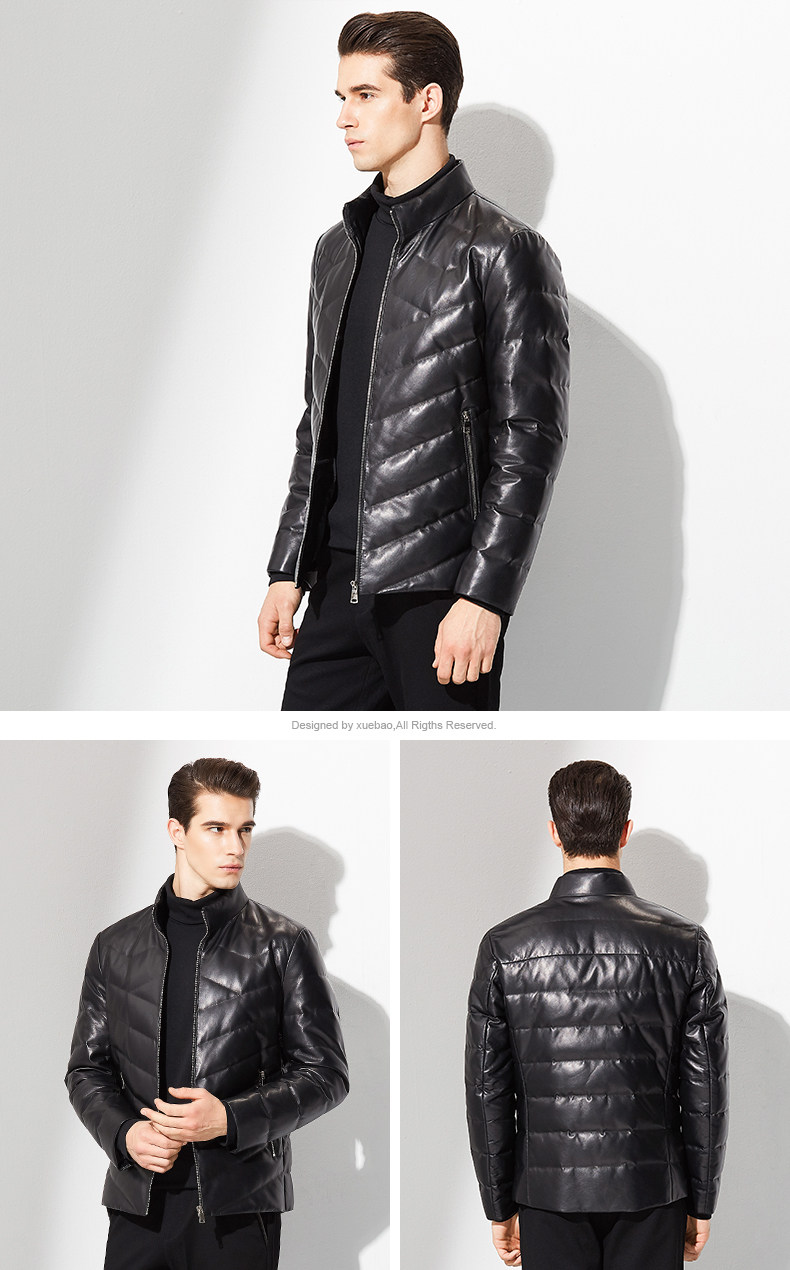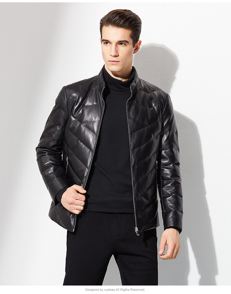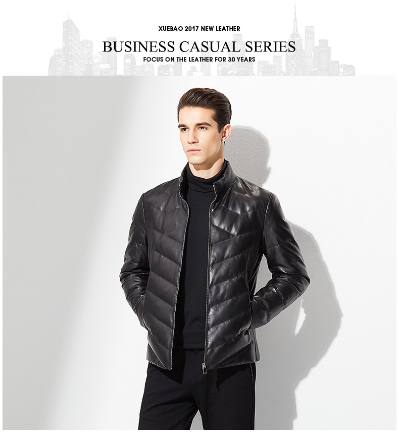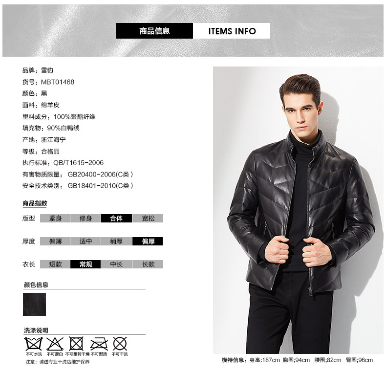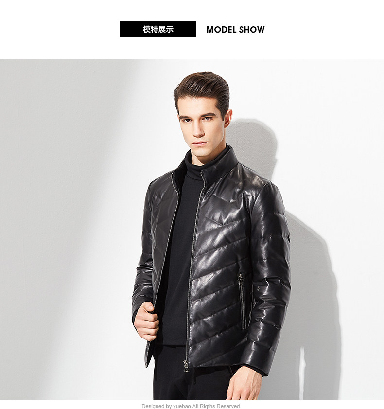 雪豹2018新款海宁真皮皮衣男士羽绒服立领绵羊皮冬装外套01468