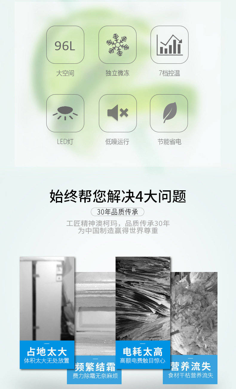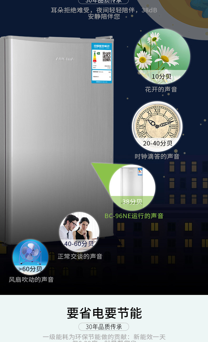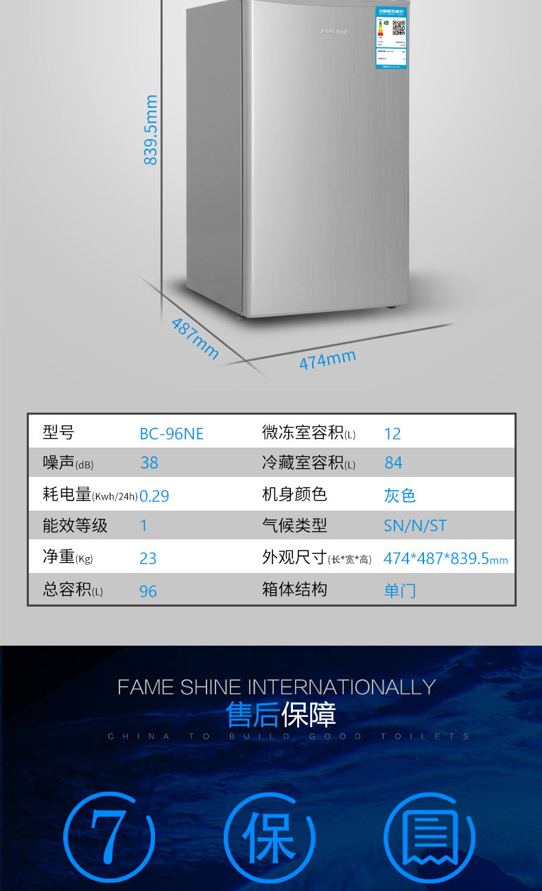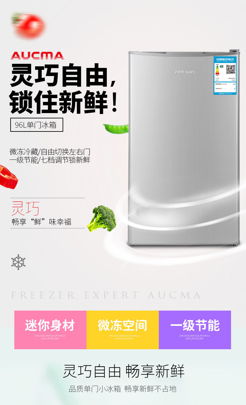 Aucma/澳柯玛 BC-96NE 单门冰箱家用小型冷藏 小冰箱办公宿舍节能