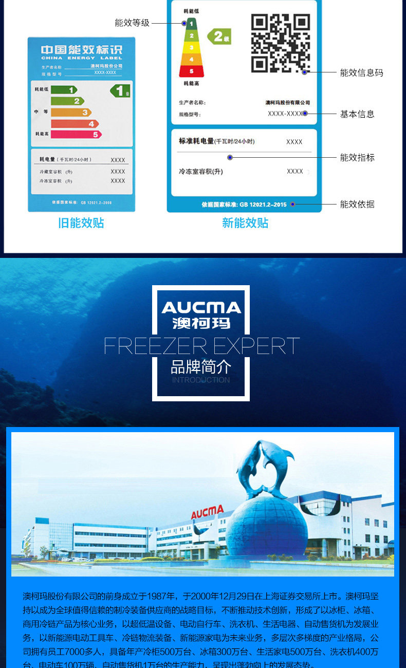 Aucma/澳柯玛 SC-187商用展示柜 冷藏立式保鲜柜 饮料啤酒陈列柜