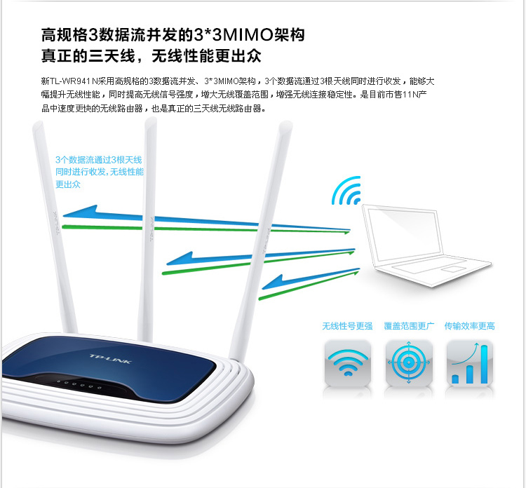 TP-LINK无线路由器 TL-WR941N 450M 三天线 家用 穿墙 AP