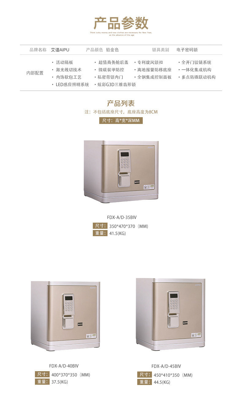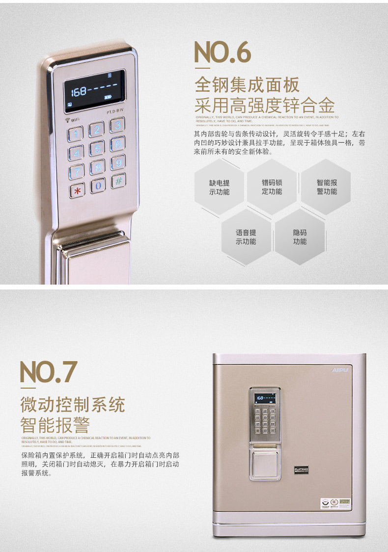 AIPU艾谱保险柜家用WiFi入墙办公保险箱铂金55B 65B 75B 85B 95B