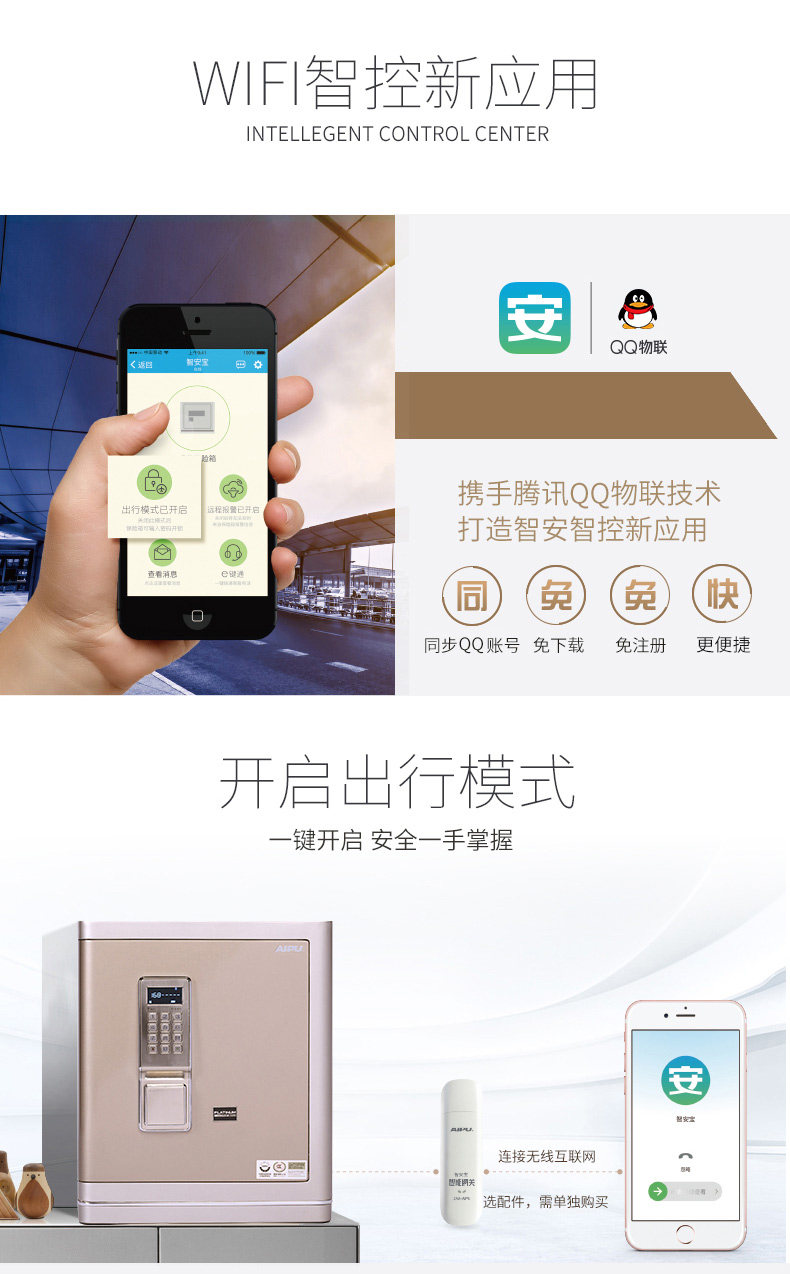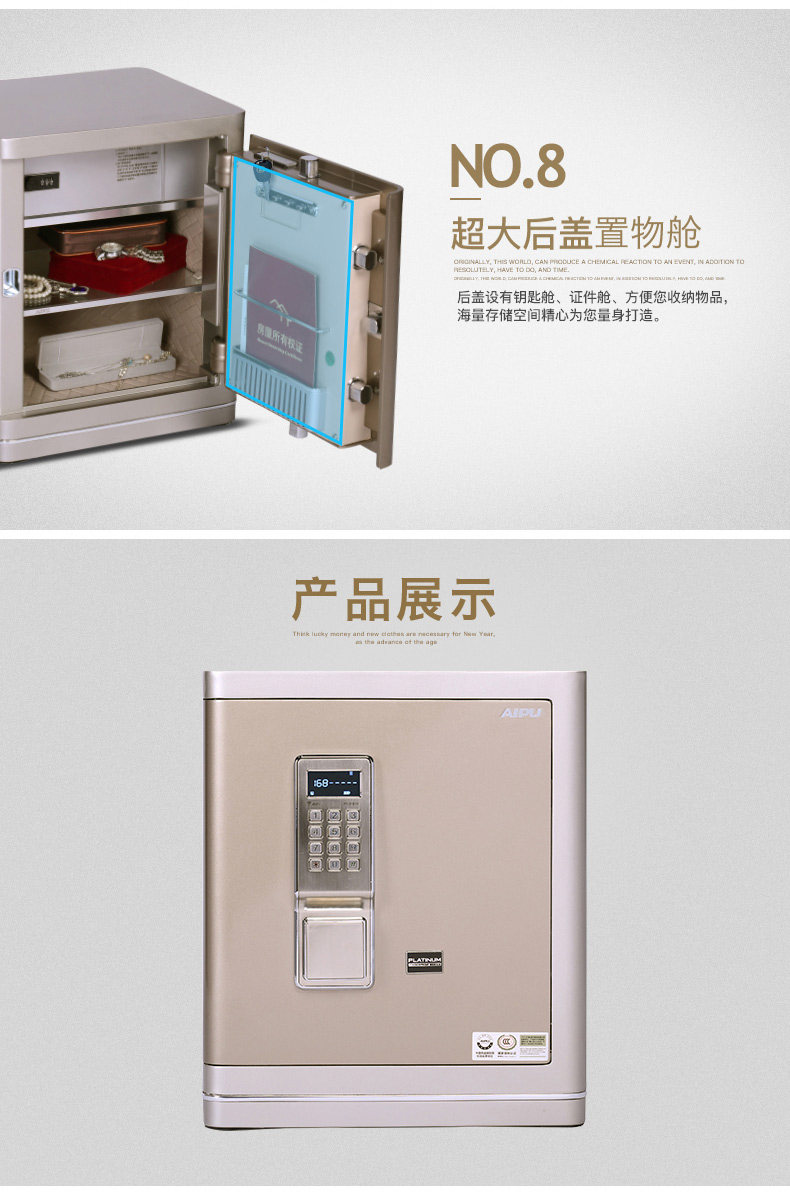 AIPU艾谱保险柜智能WiFi家用入墙办公保险箱3c认证铂金30B