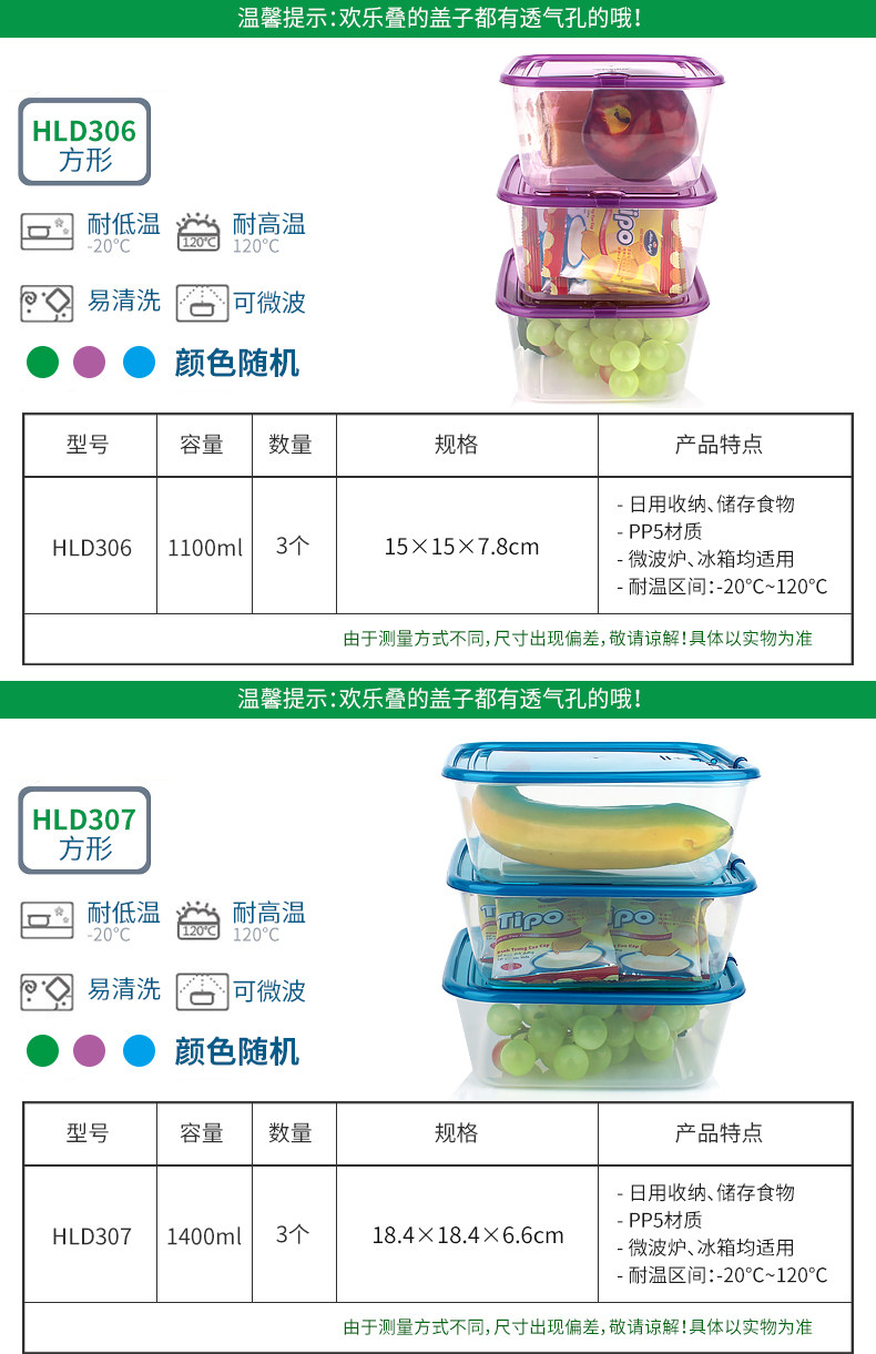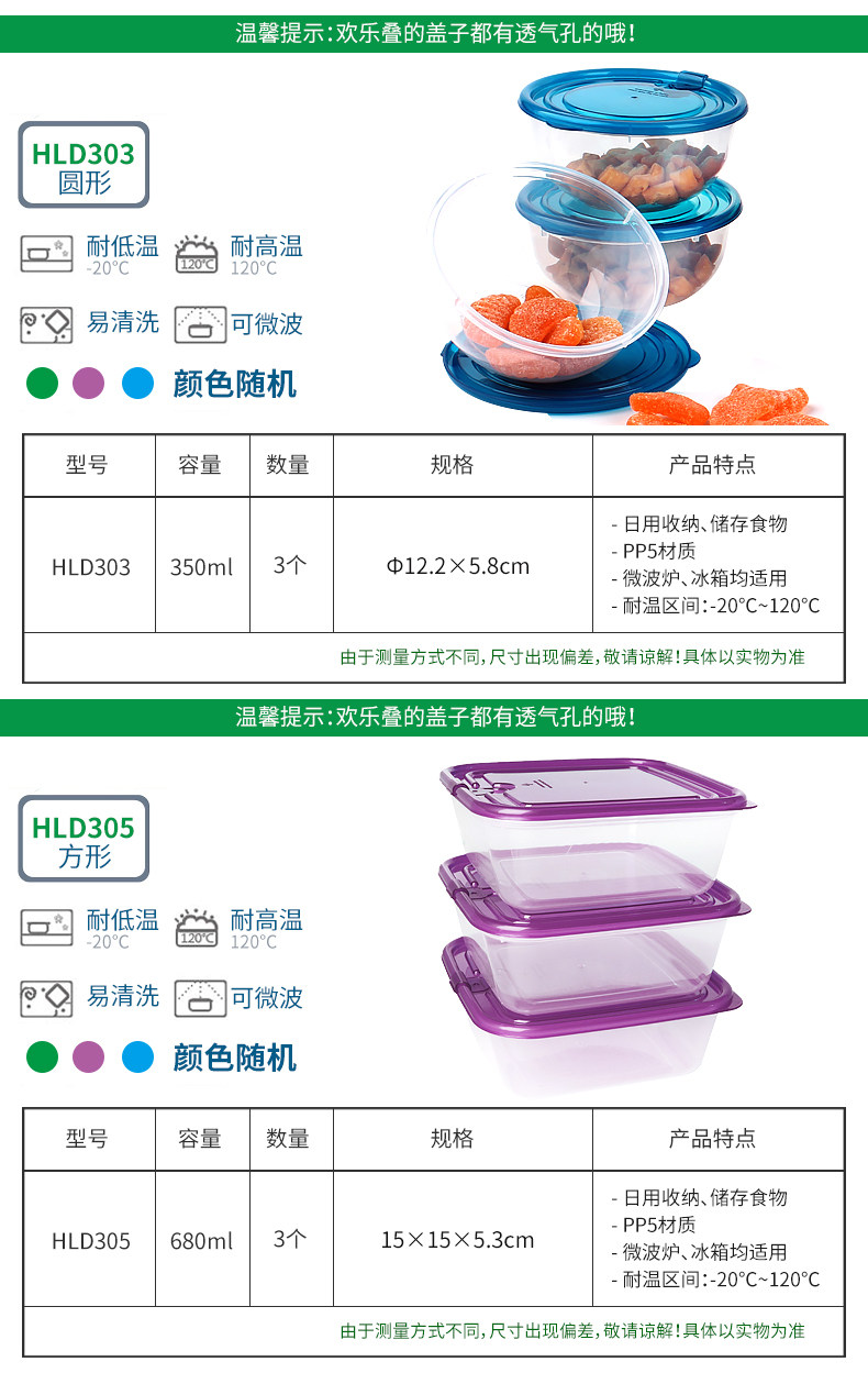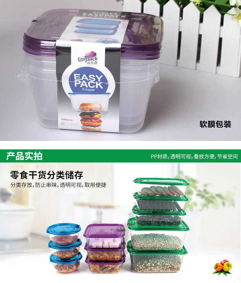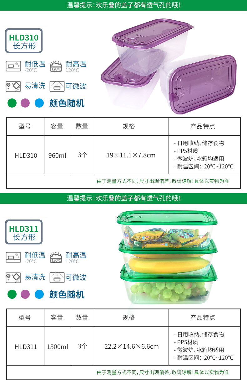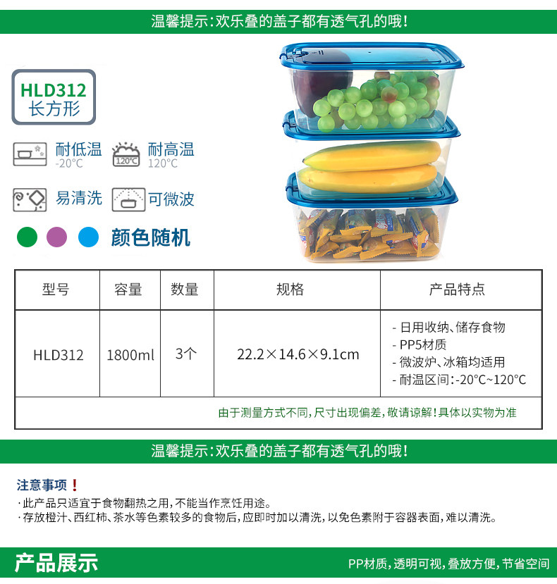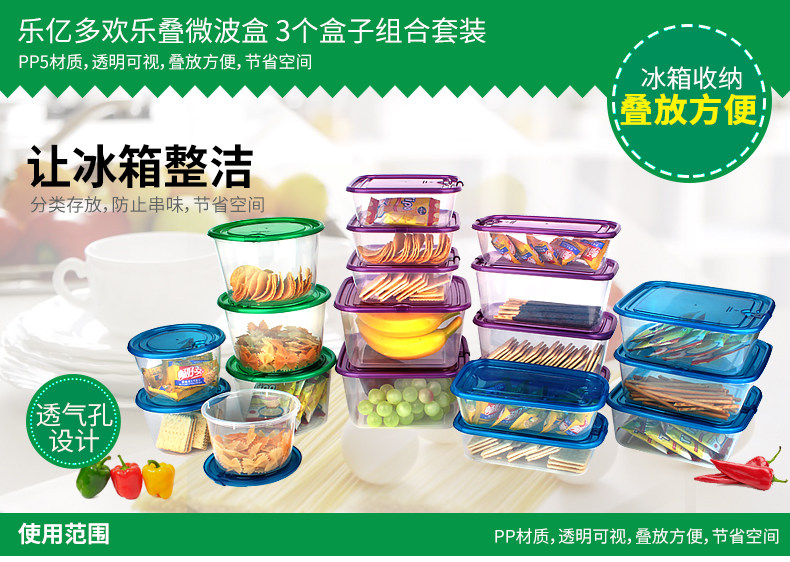 乐亿多欢乐叠保鲜盒塑料水果盒饭盒便当盒冰箱收纳盒食品盒11件套