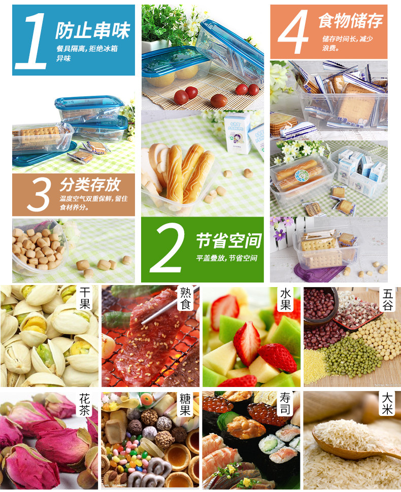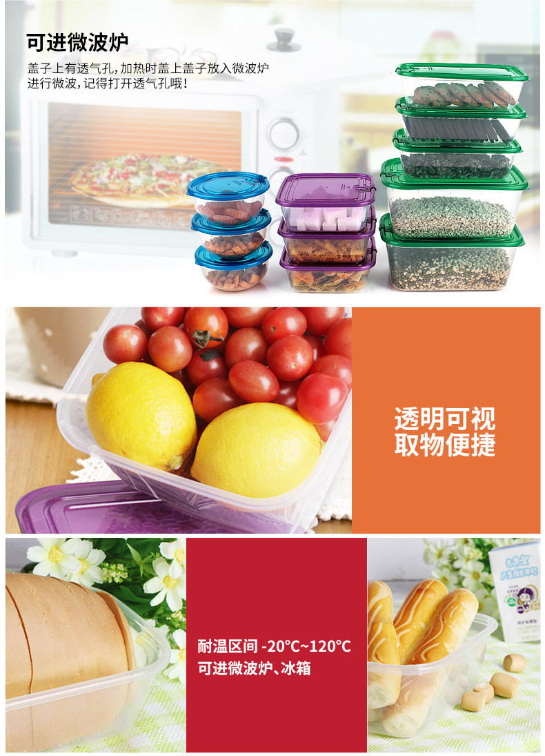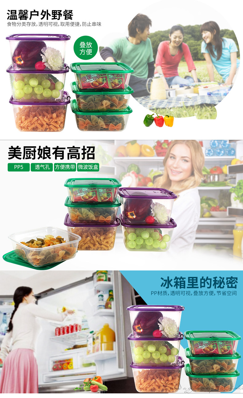 乐亿多冰箱收纳盒微波炉饭盒保鲜盒套装塑料长方形饭盒水果盒