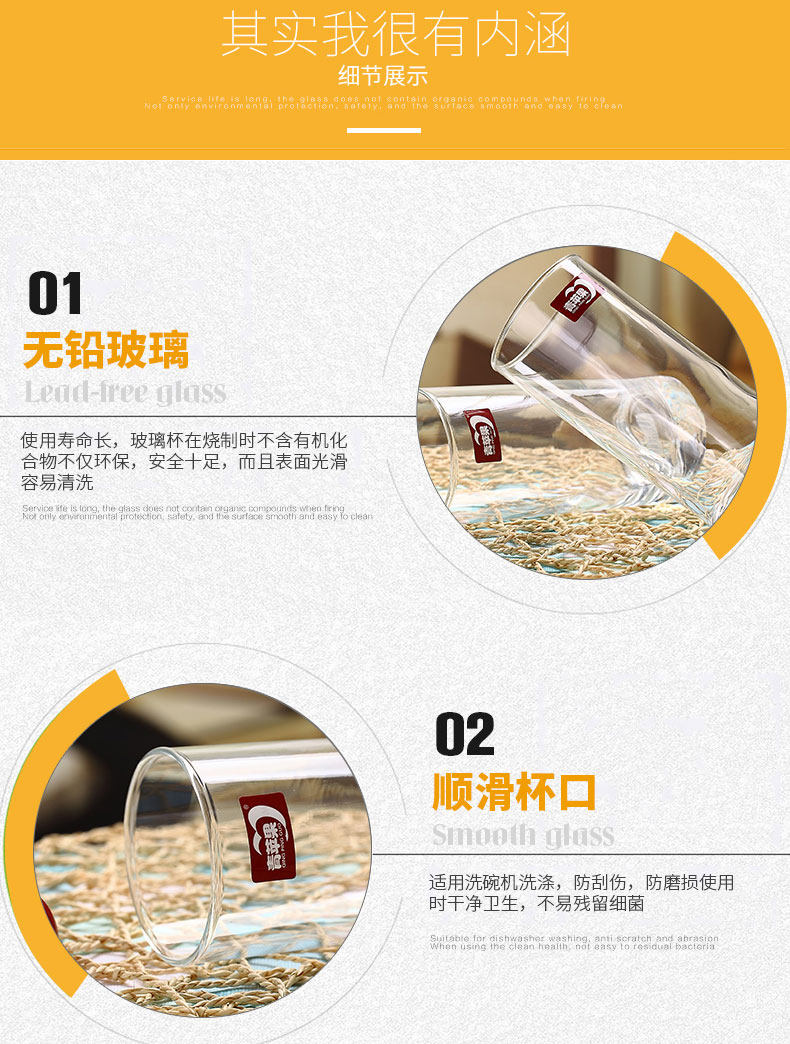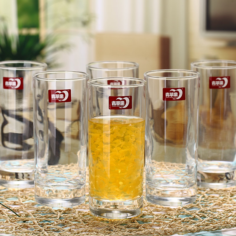 青苹果透明玻璃直升杯家用水杯果汁杯饮水杯喝水泡茶杯240ml6只装