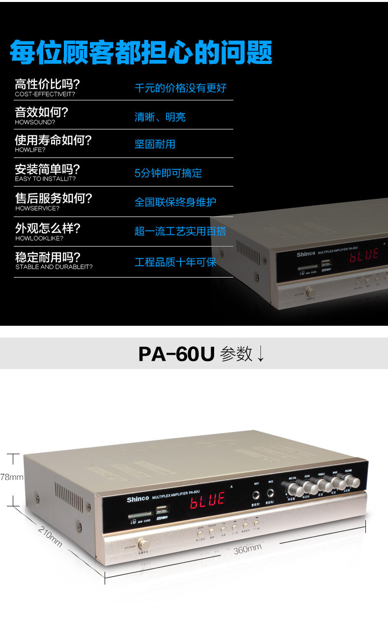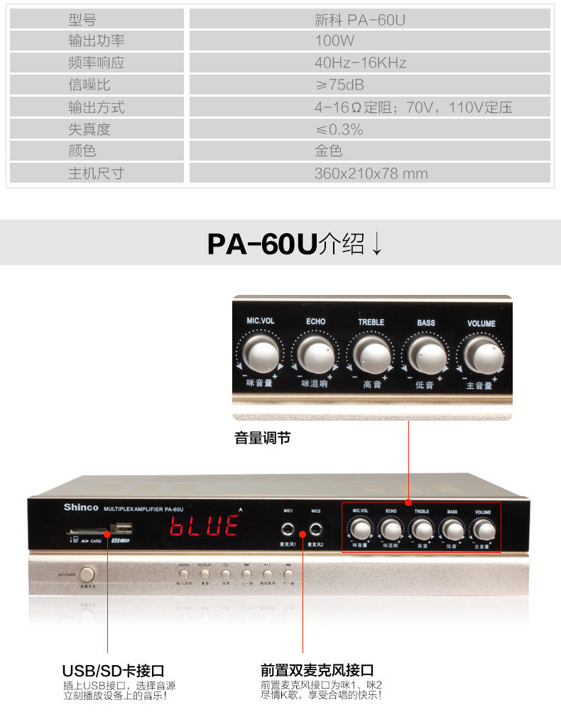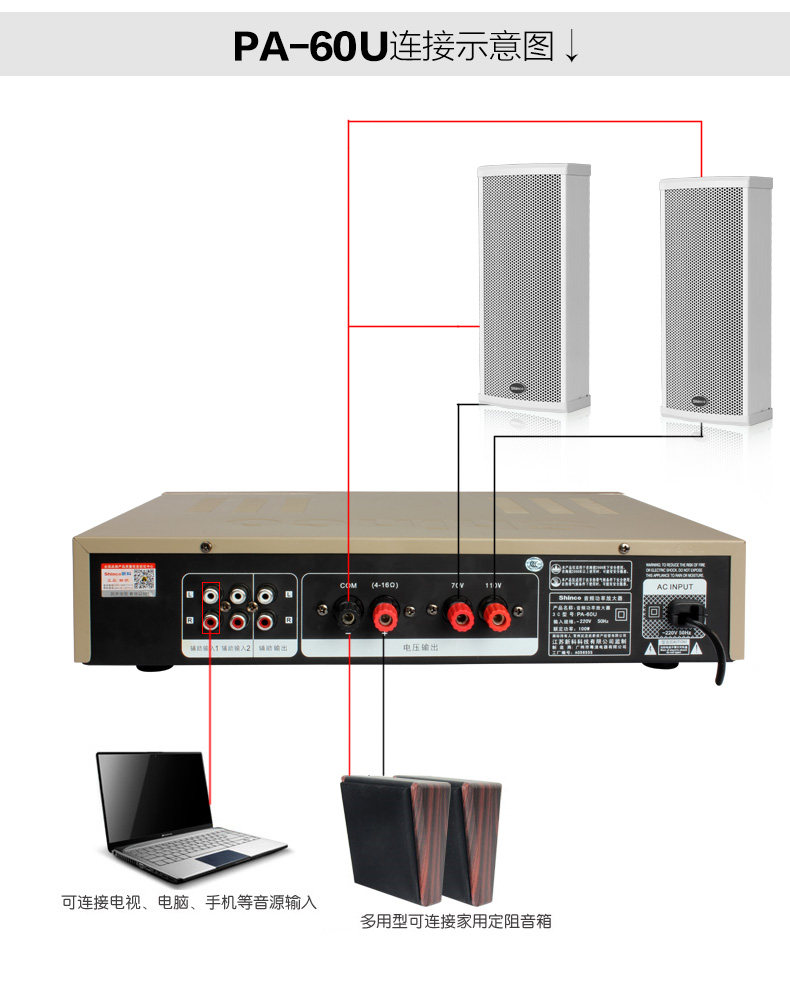 Shinco/新科 PA-60U定压定阻吸顶天花喇叭背景音乐音响蓝牙功放机