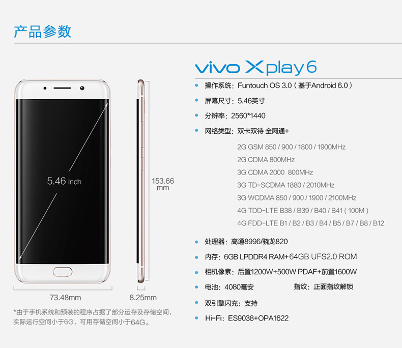 【6期免息赠礼】vivo XPlay6曲面屏双摄6G大运存全网通4G智能手机