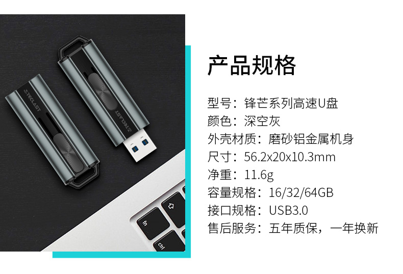 台电 U盘64g 高速3.0金属 64gu盘 定制刻字创意商务车载个性优盘