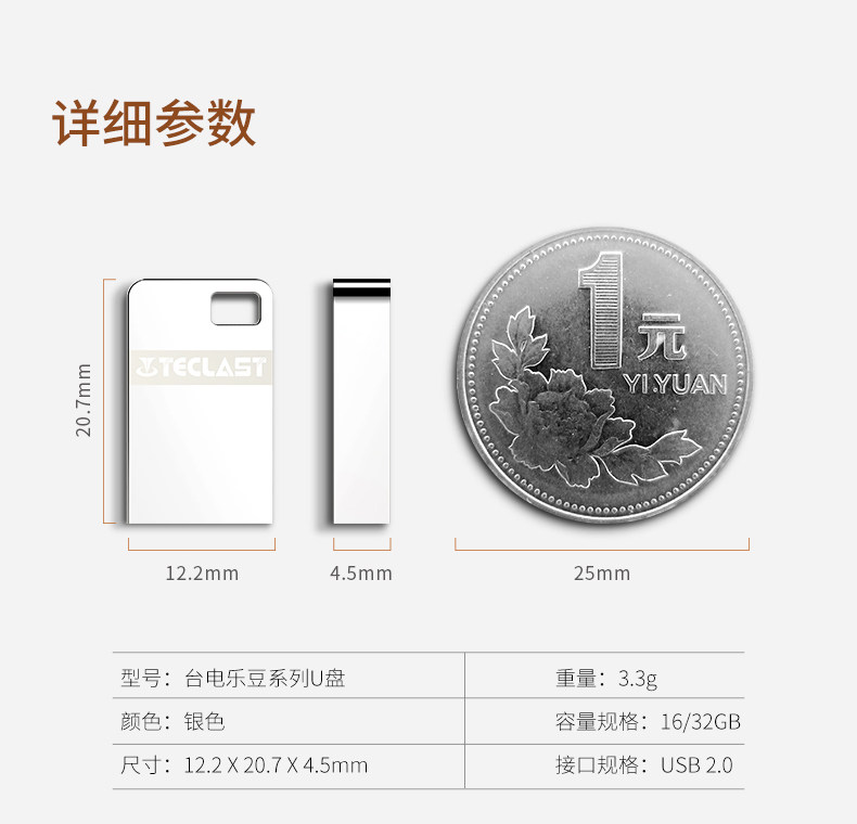 台电u盘乐豆16g 金属迷你16gu盘创意小U盘个性定制 防水加密优盘