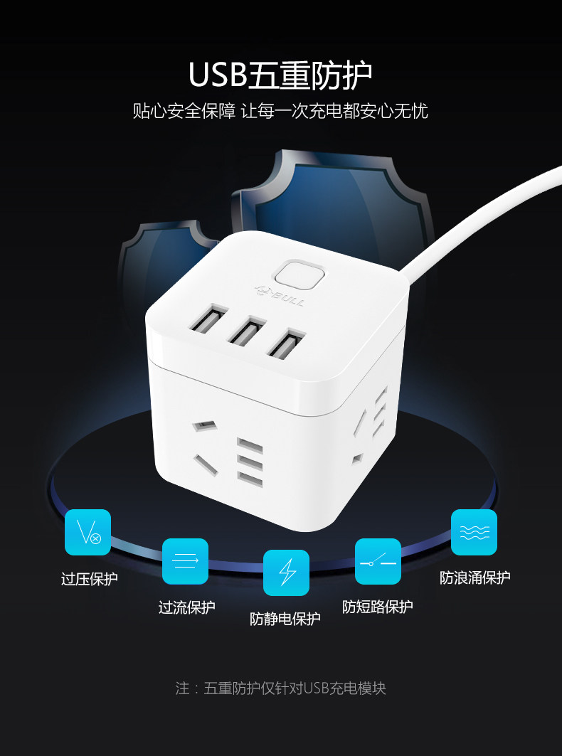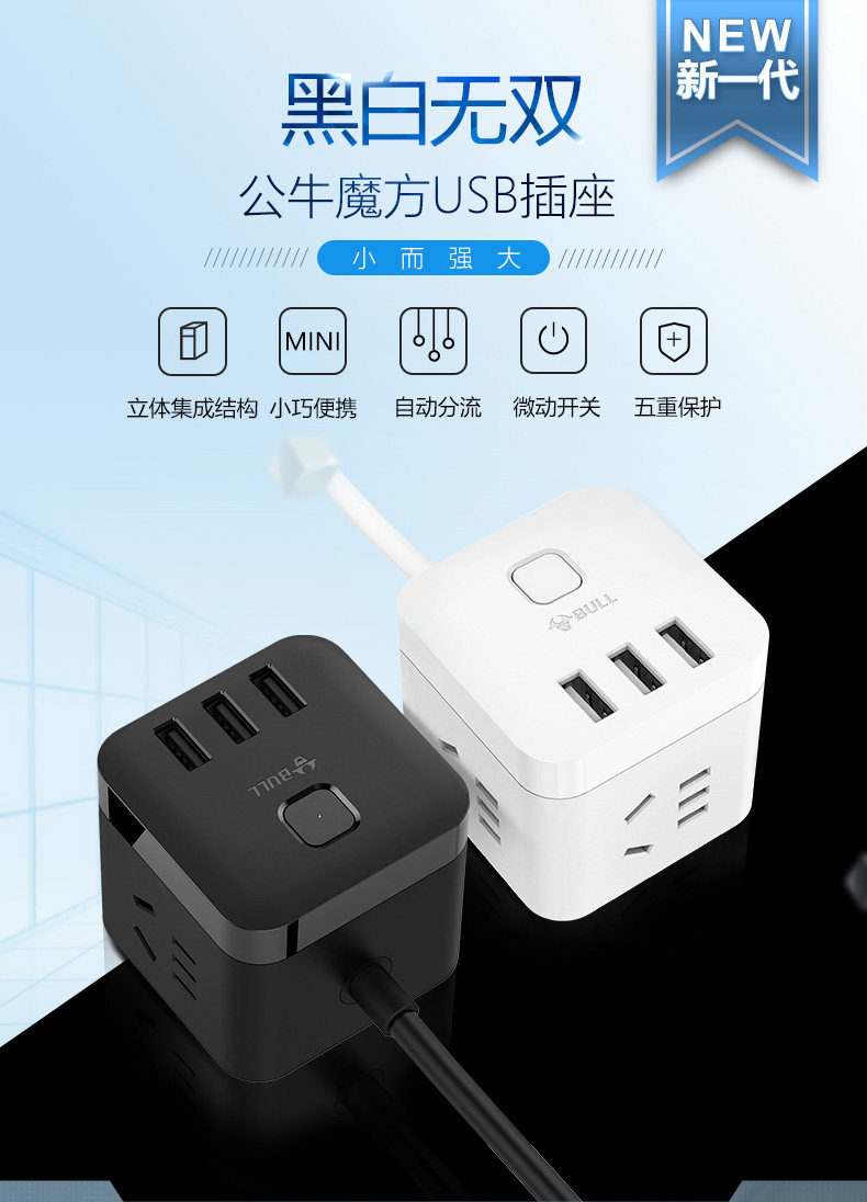 以下是公牛插座usb插座充电魔方插排插线板接线板多功能家用电源转换器的详细说明,厂家介绍,求购联系信息,最终解释权归公牛集团有限公司所有