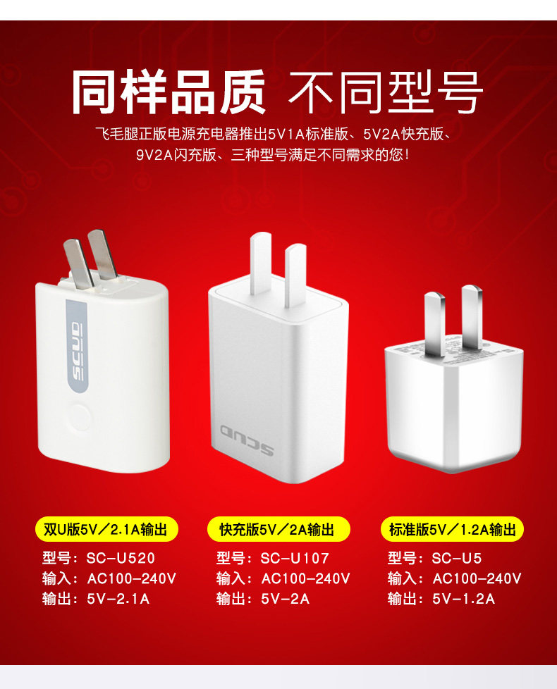 飞毛腿苹果充电器iPhone6充电头6s手机7P快充2A安卓通用插头5三星