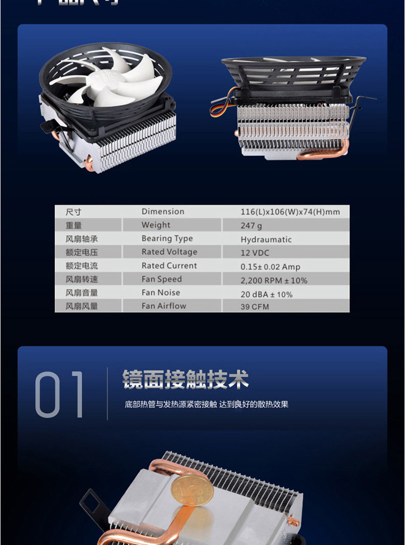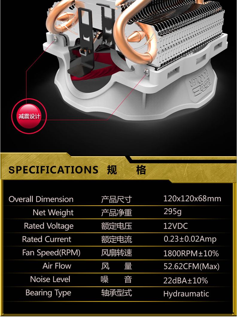 超频三风冻S126CPU散热器cpu风扇AMD/775/115X/2011静音风扇