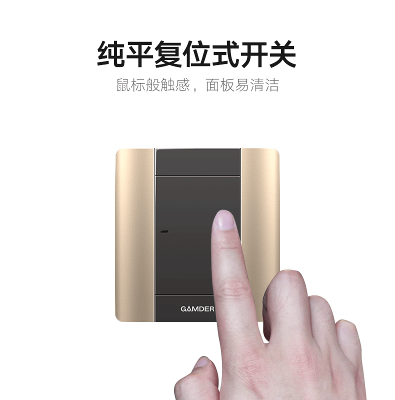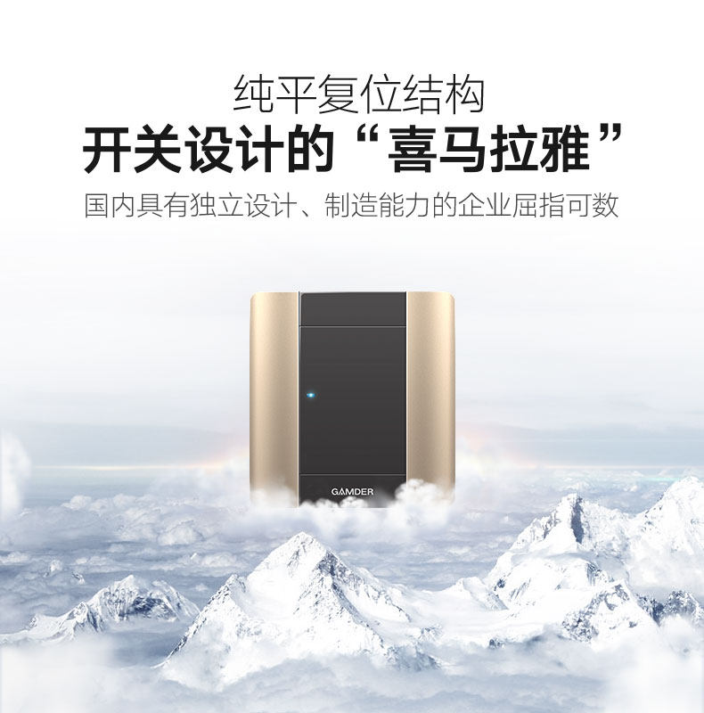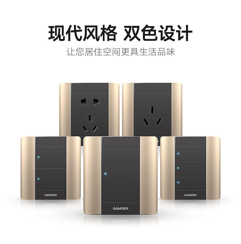 家的体验包香槟金拉丝大面板复位LED墙壁开关插座86型五孔插座