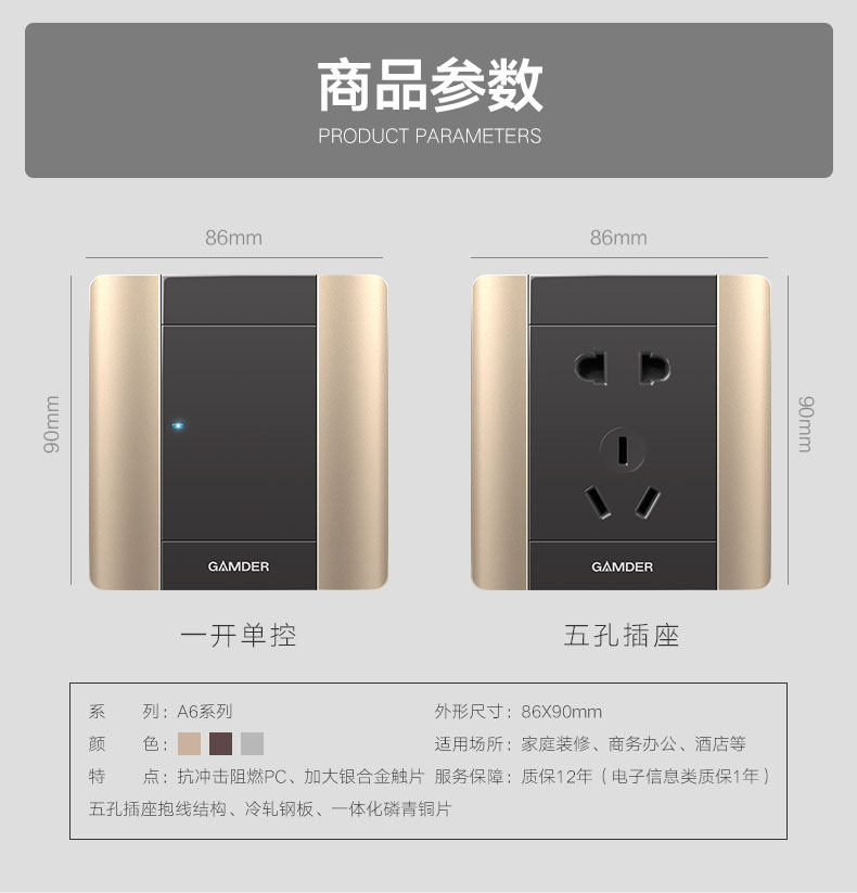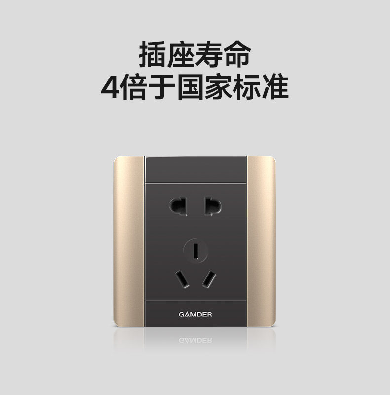 家的五孔插座86型5孔插座香槟金色墙壁开关面板 家用 二三插座
