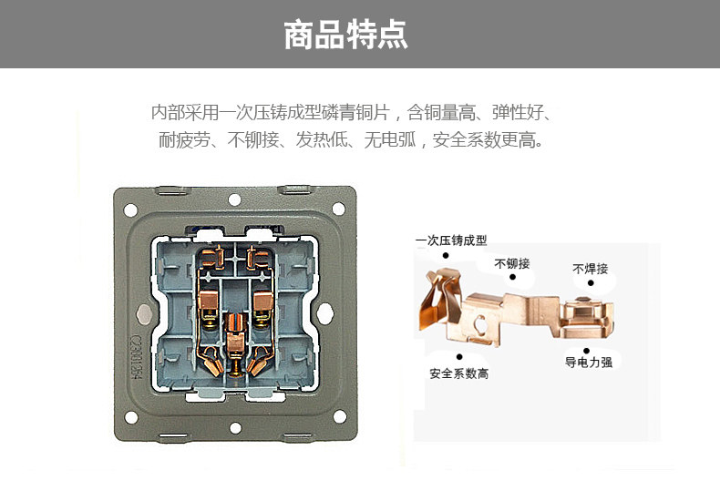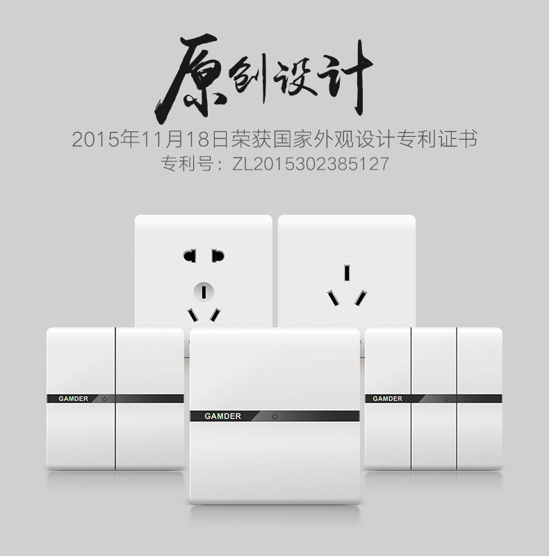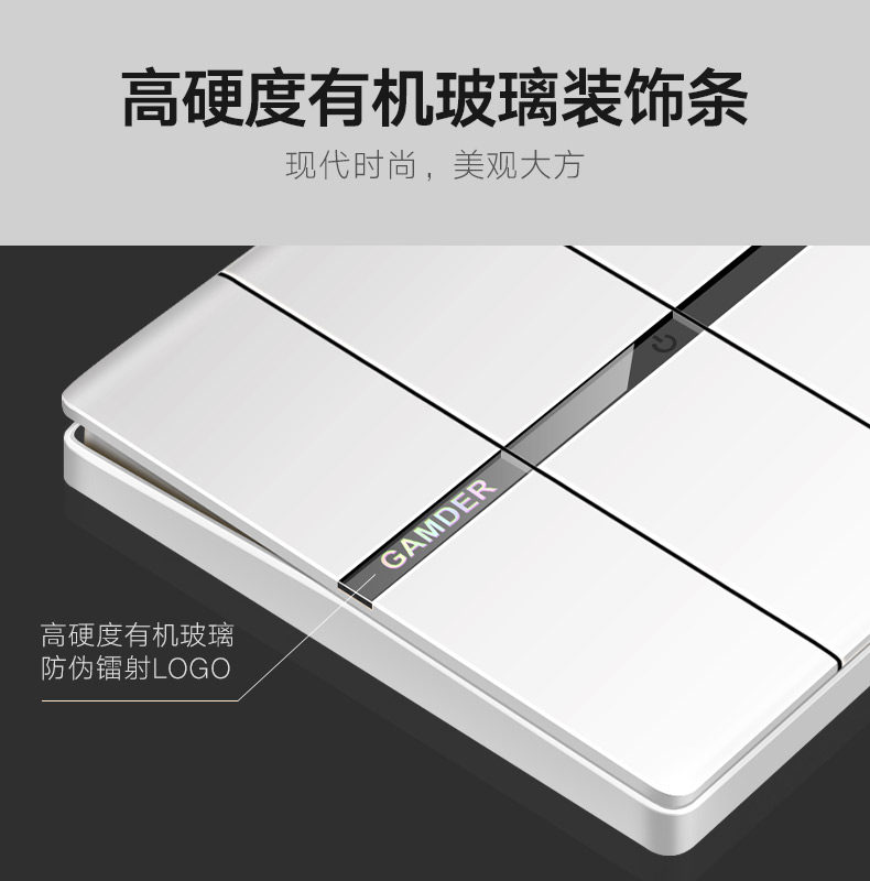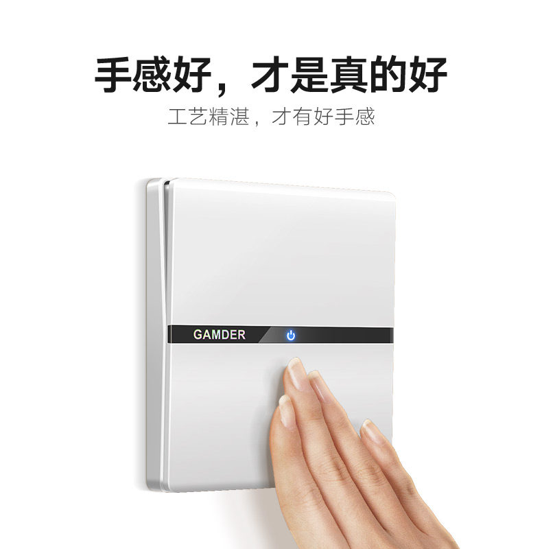 家的体验包香槟金拉丝大面板复位LED墙壁开关插座86型五孔插座