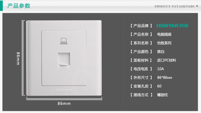 鸿雁开关插座 空调插座带开关面板 墙壁开关面板 一开16A空调插座