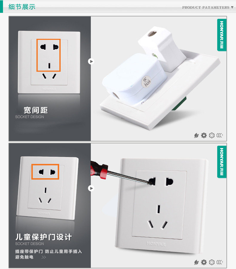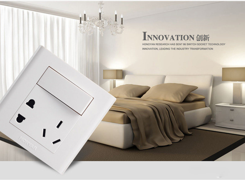 鸿雁开关插座插座面板开关面板墙壁开关一位双控带五孔一开五孔