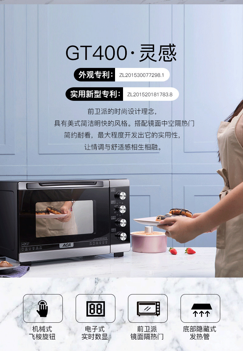 ACA/北美电器 ATO-M38AC电烤箱家用烘焙多功能全自动蛋糕立式烤箱