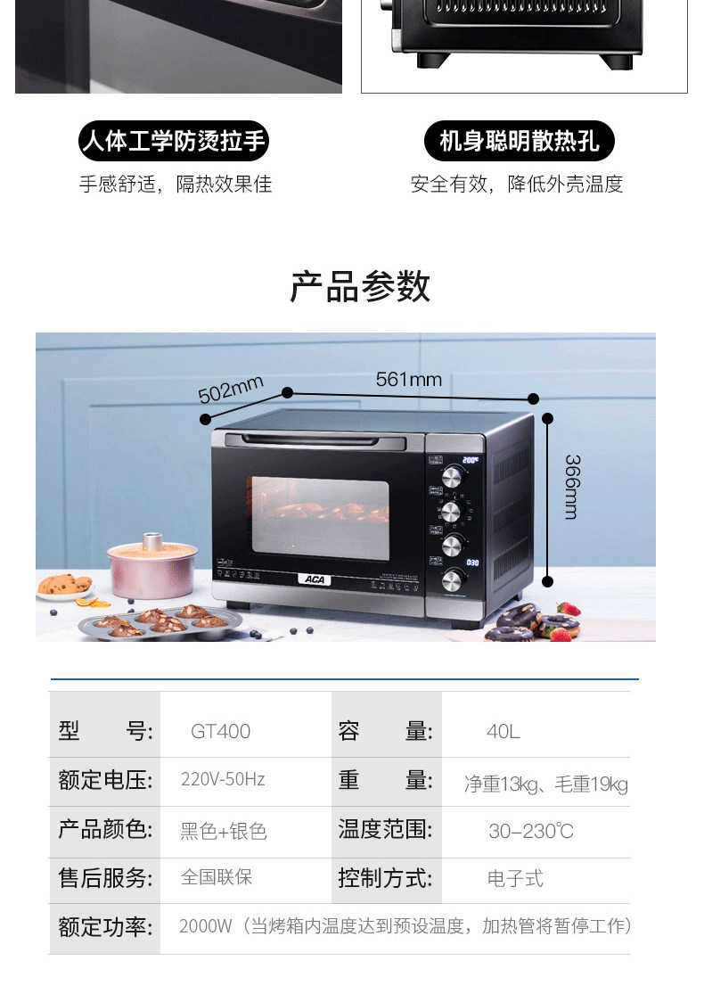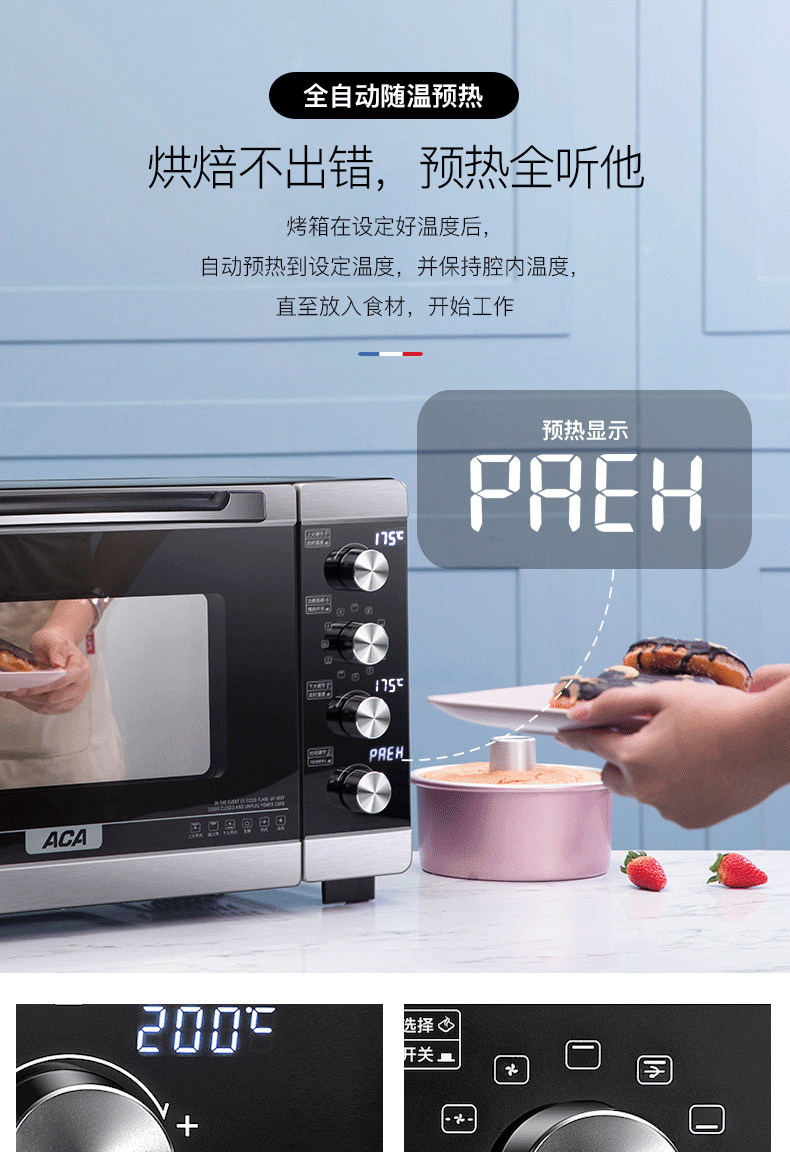 ACA/北美电器 ATO-E38AC电烤箱家用烘焙多功能全自动智能语音烤箱