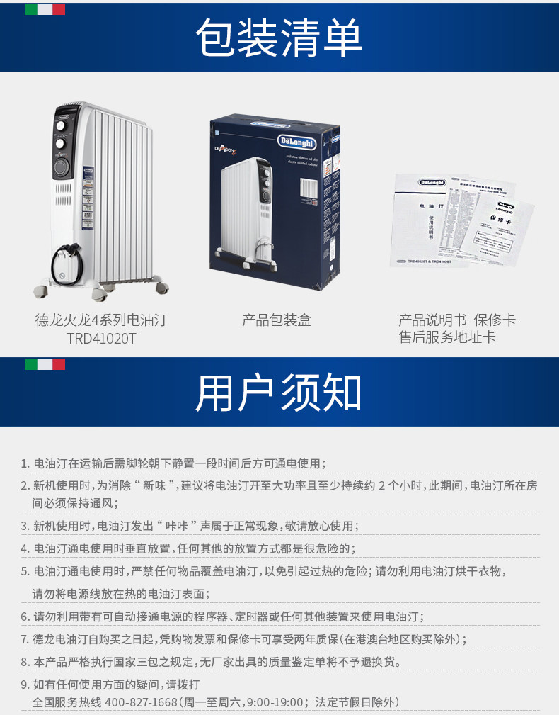 Delonghi/德龙 TRD40820T 家用8片电热油汀取暖器暖风机 联保