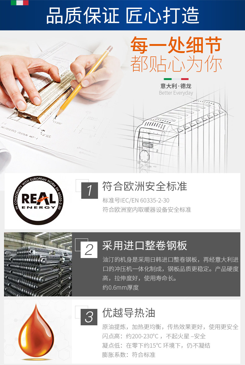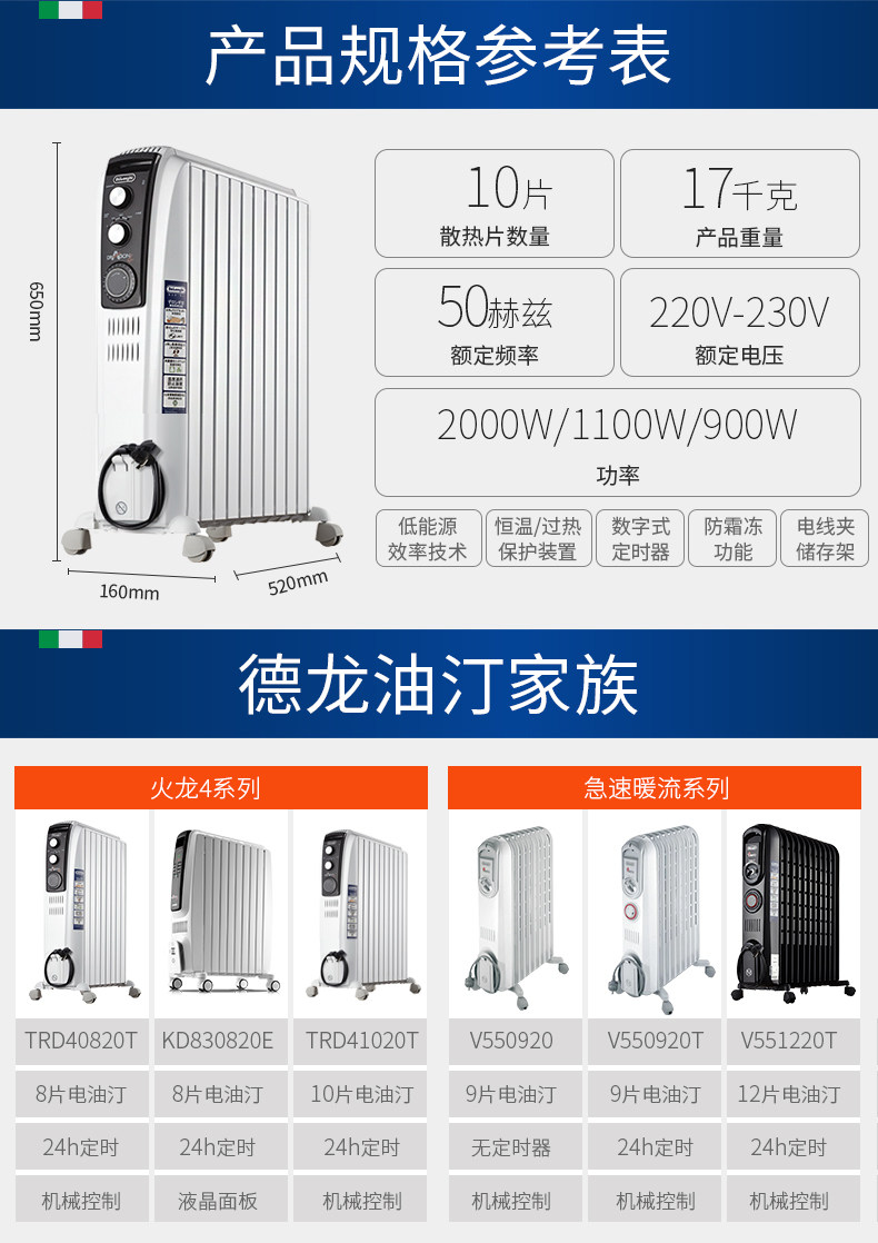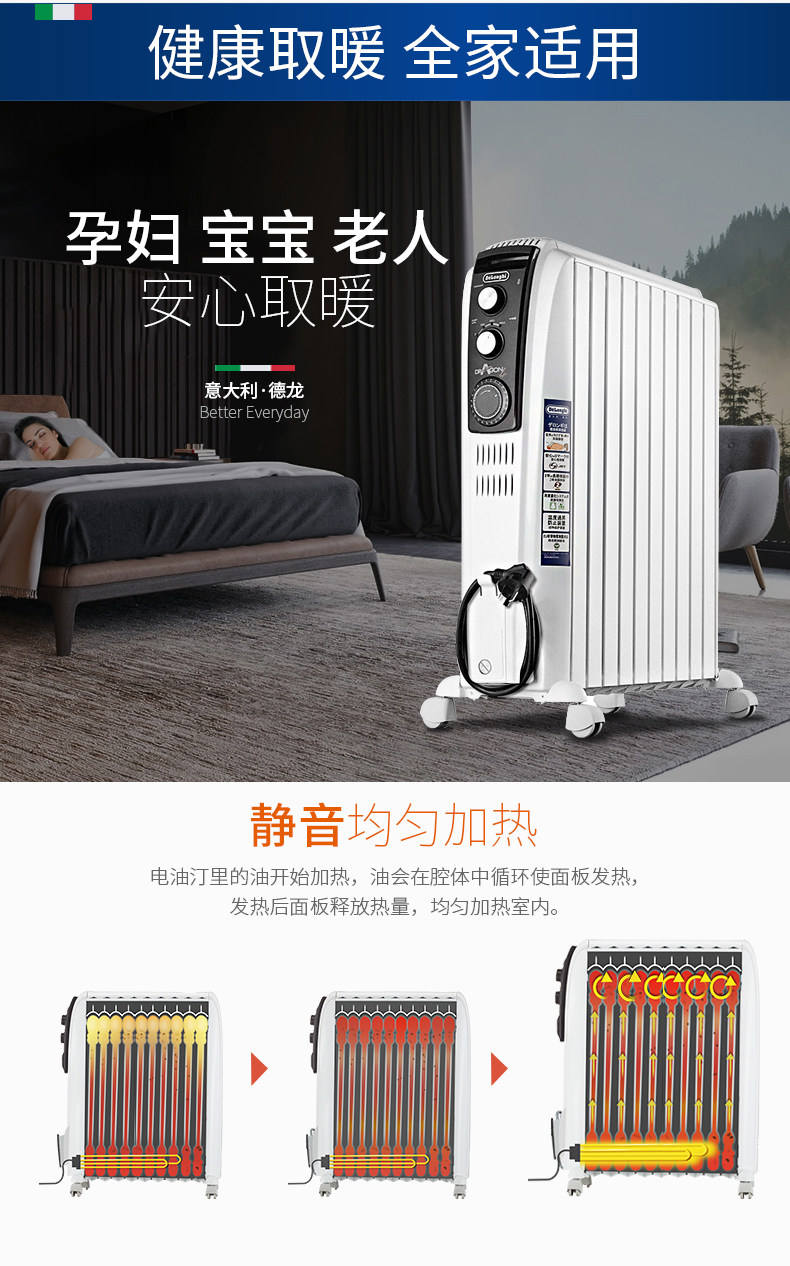 DeLonghi/德龙 V551220T 家用12片电热油汀取暖器电暖器 联保